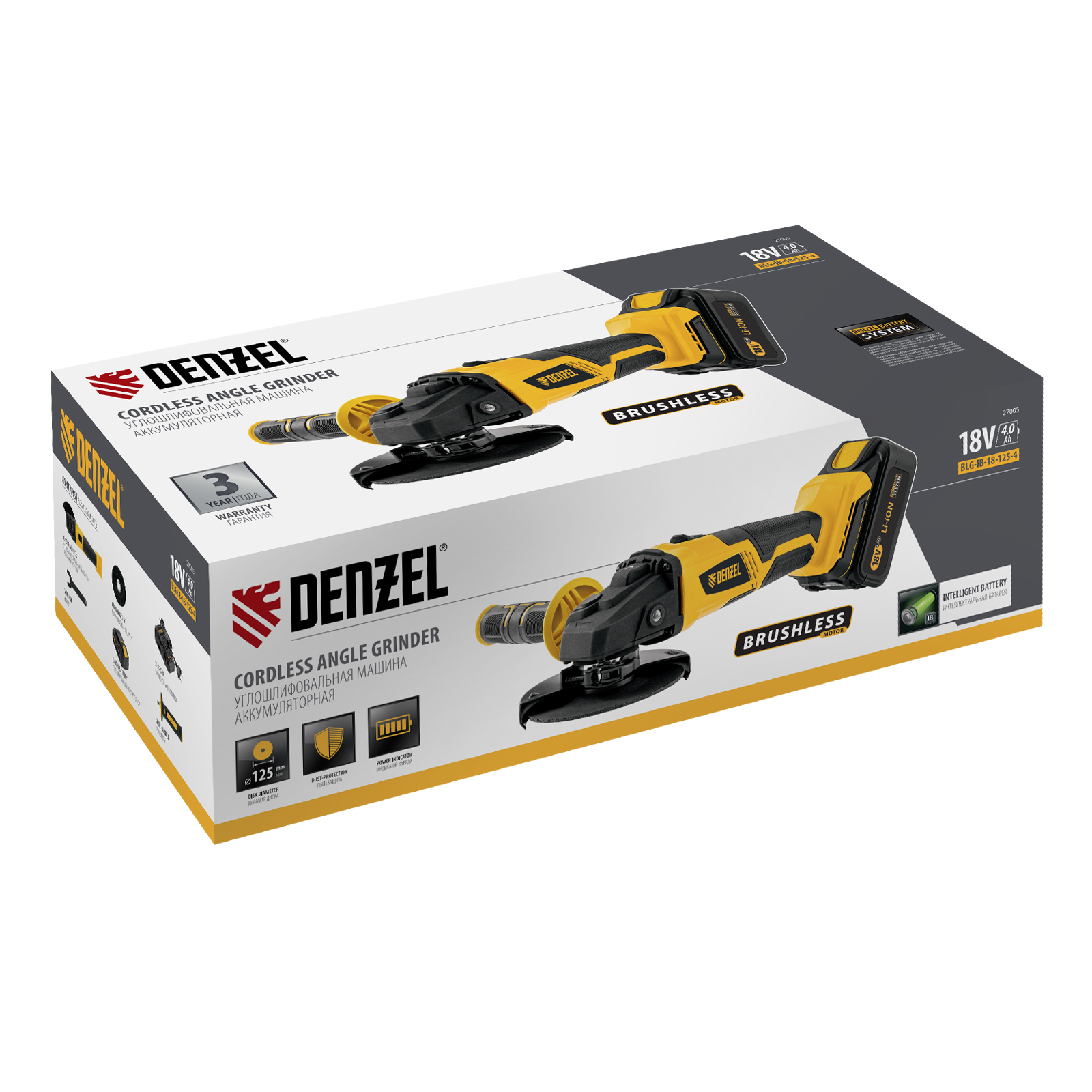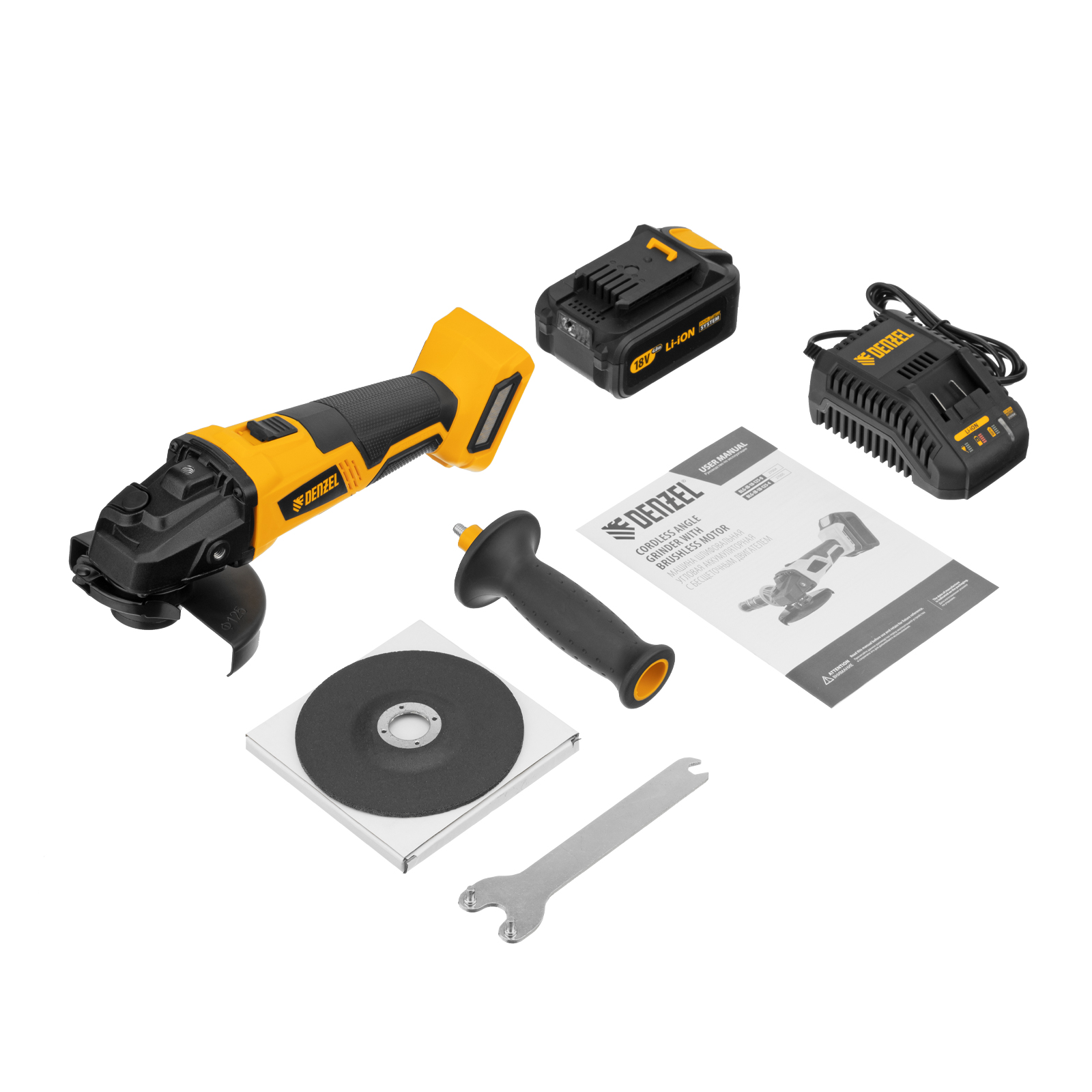 Машина углошлифовальная аккумуляторная бесщет. BLG-IB-18-125-4, Li-ion, 18 В Denzel в Краснодаре