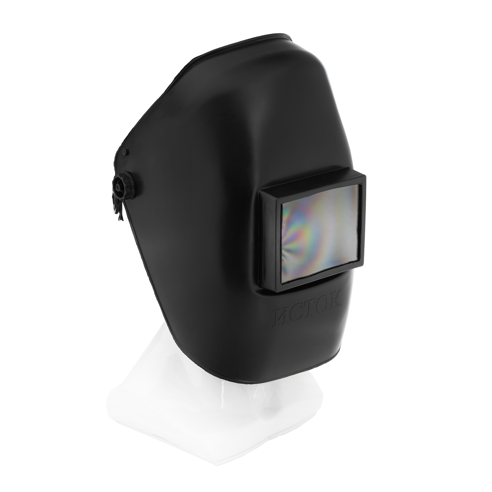 - Комфортная работа — экран обеспечивает хороший обзор во время сварки, а поролоновая накладка минимизирует трение и давление ободка на лоб.