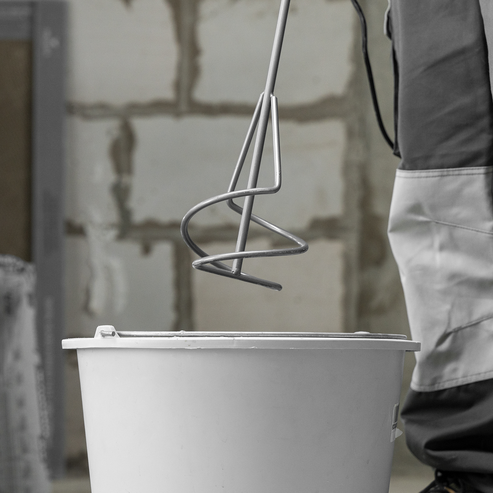 - Прочная сварная конструкция — стальной миксер выдерживает значительные нагрузки при размешивании густых составов.