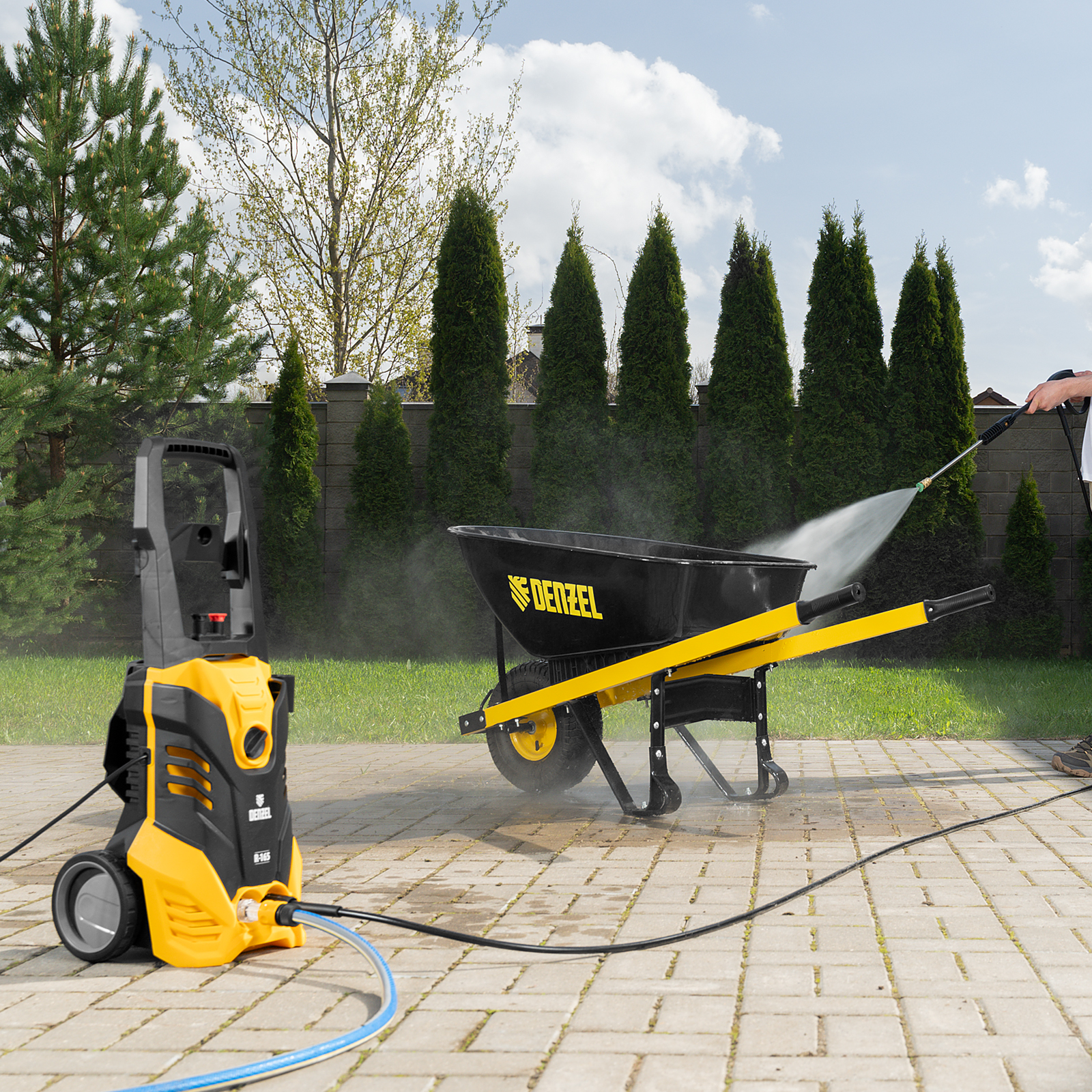 Колесная моечная машина высокого давления Denzel R-165 58234 мощностью 2200 Вт обеспечивает подачу воды под давлением 165 бар со скоростью 7 л/мин. Используется для эффективного очищения бесконтактным методом дорожек, заборов, небольших строений, садового инвентаря и автомобилей от серьезных загрязнений. При отсутствии доступа к водопроводу самовсасывающая система обеспечит забор воды из любой емкости, потеря давления при этом составит всего 5%.