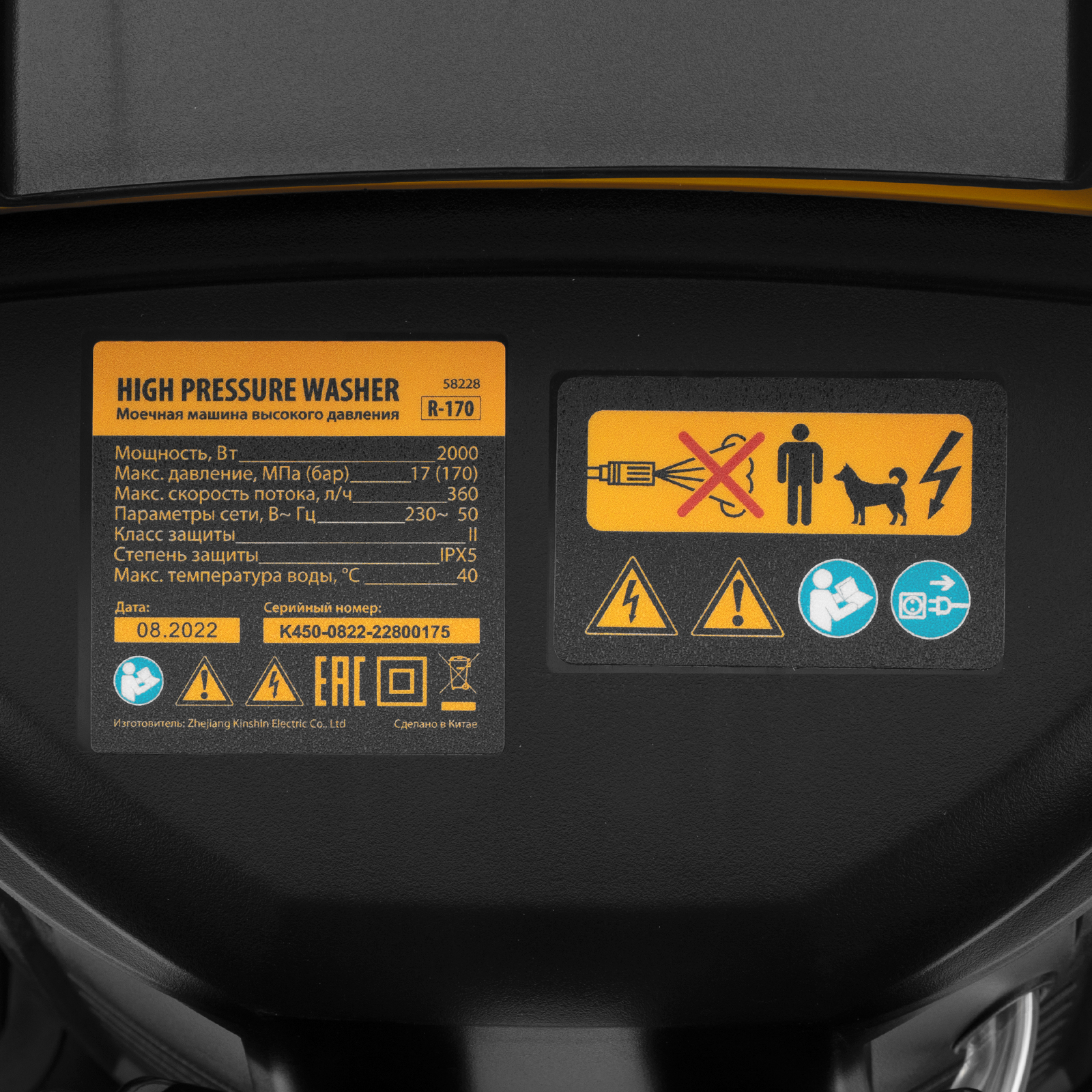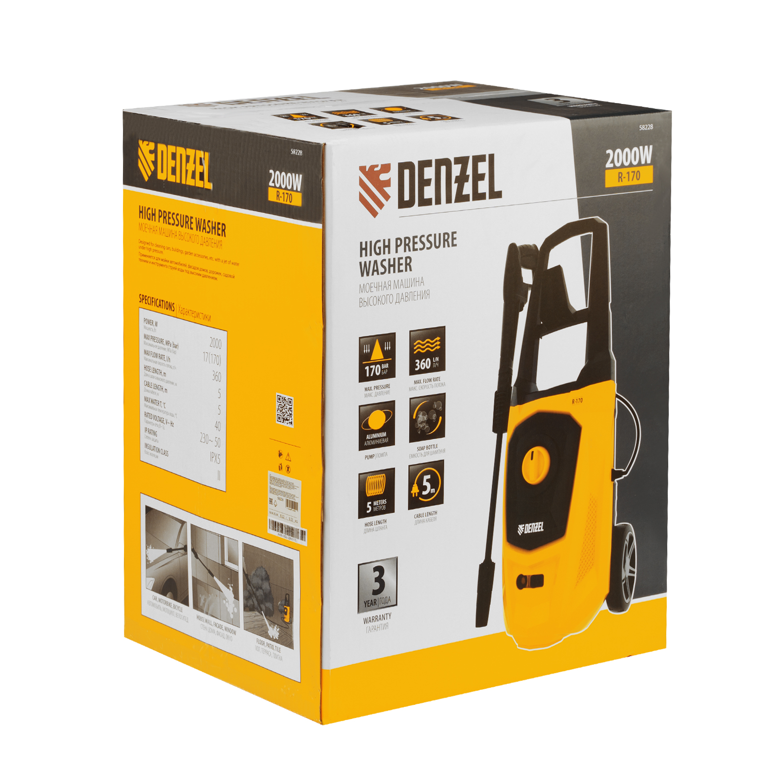 Моечная машина высокого давления R-170, 2000 Вт, 170 бар, 360 л/ч, колесная Denzel в Краснодаре