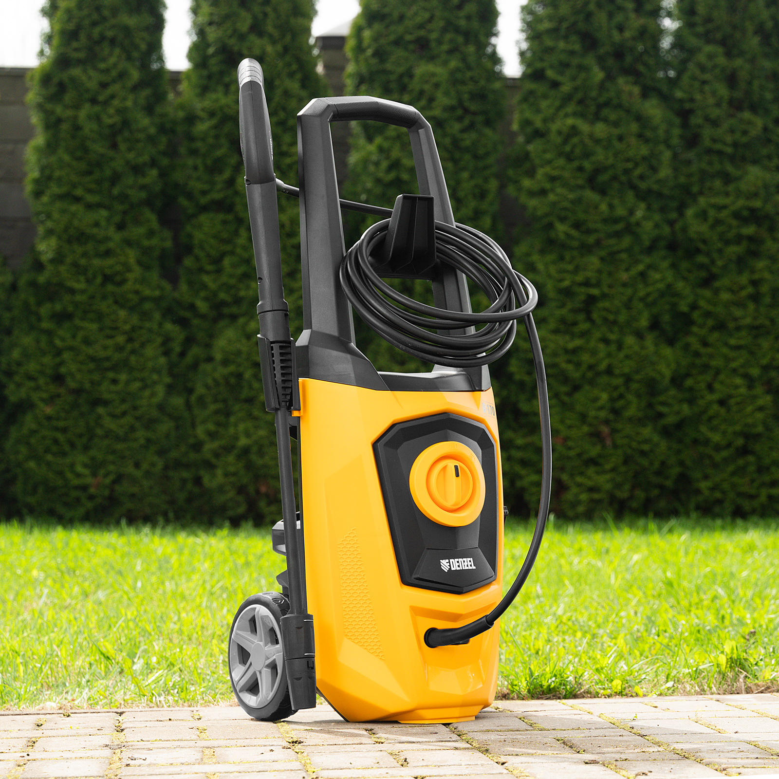 - Длина шланга и кабеля 5 м — не нужно часто перемещать машину, можно работать на удалении от розетки.