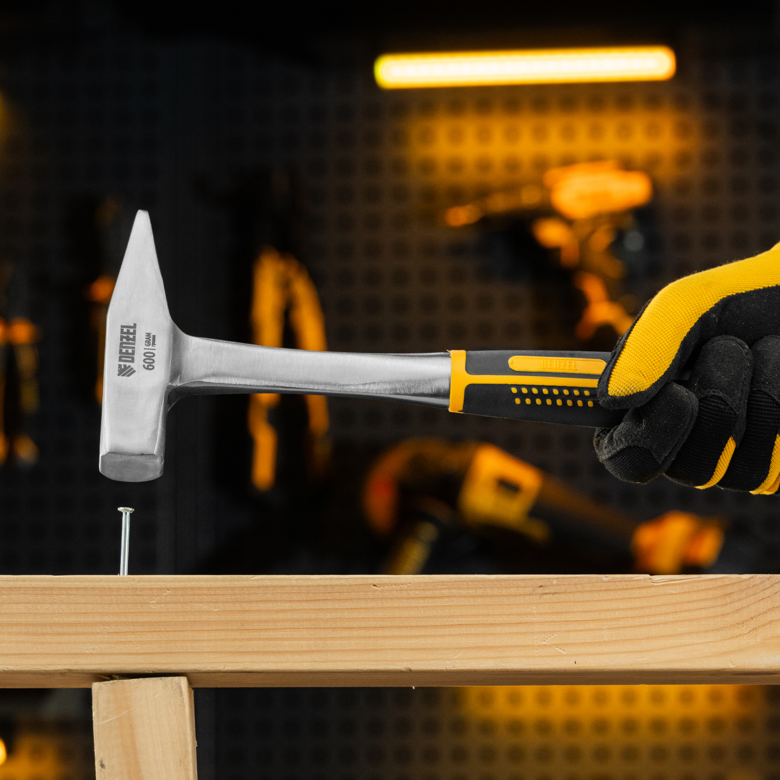 Молоток слесарный 600 г, цельнометаллический, двухкомпонентная рукоятка Denzel в Краснодаре
