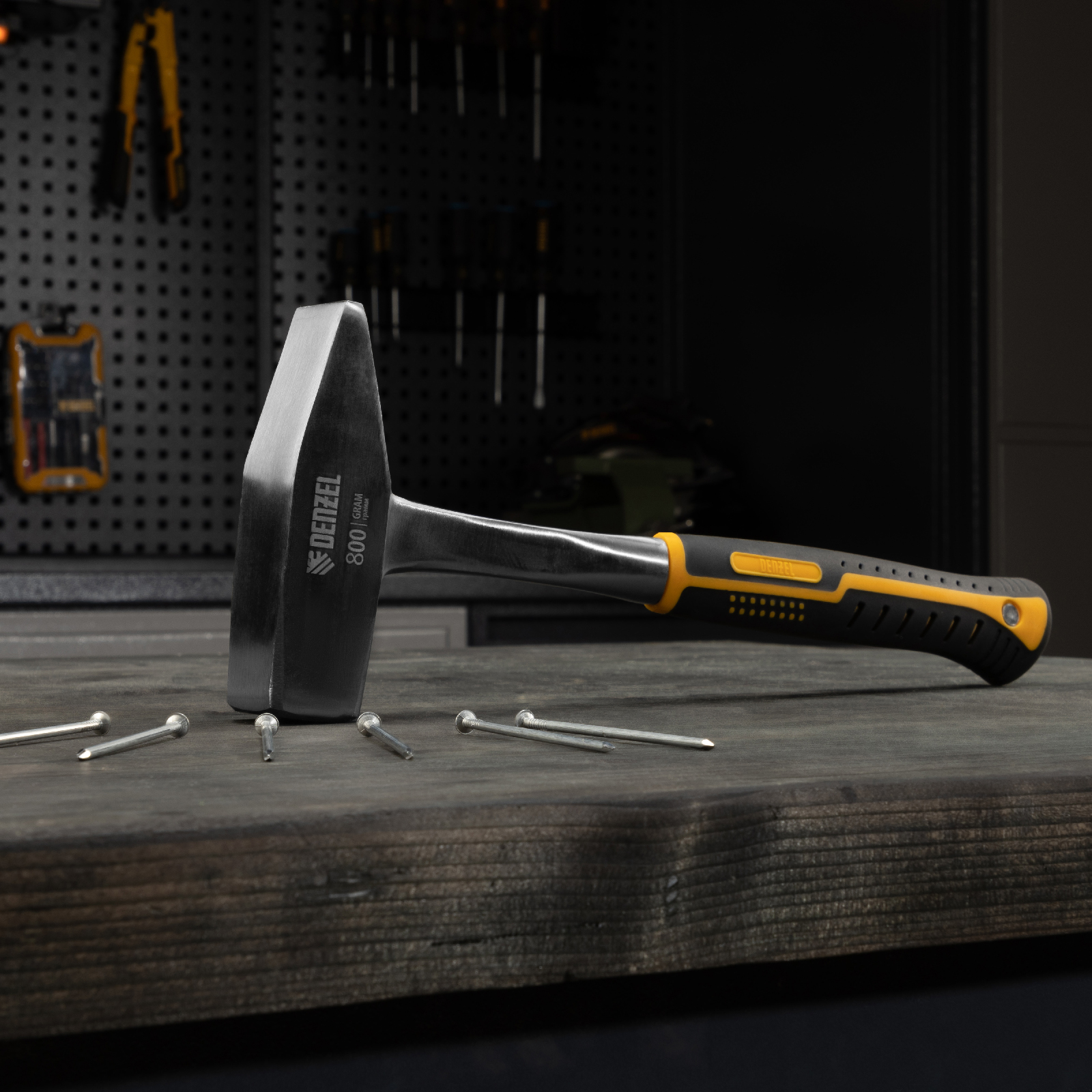 Молоток слесарный 800 г, цельнометаллический, двухкомпонентная рукоятка Denzel в Краснодаре