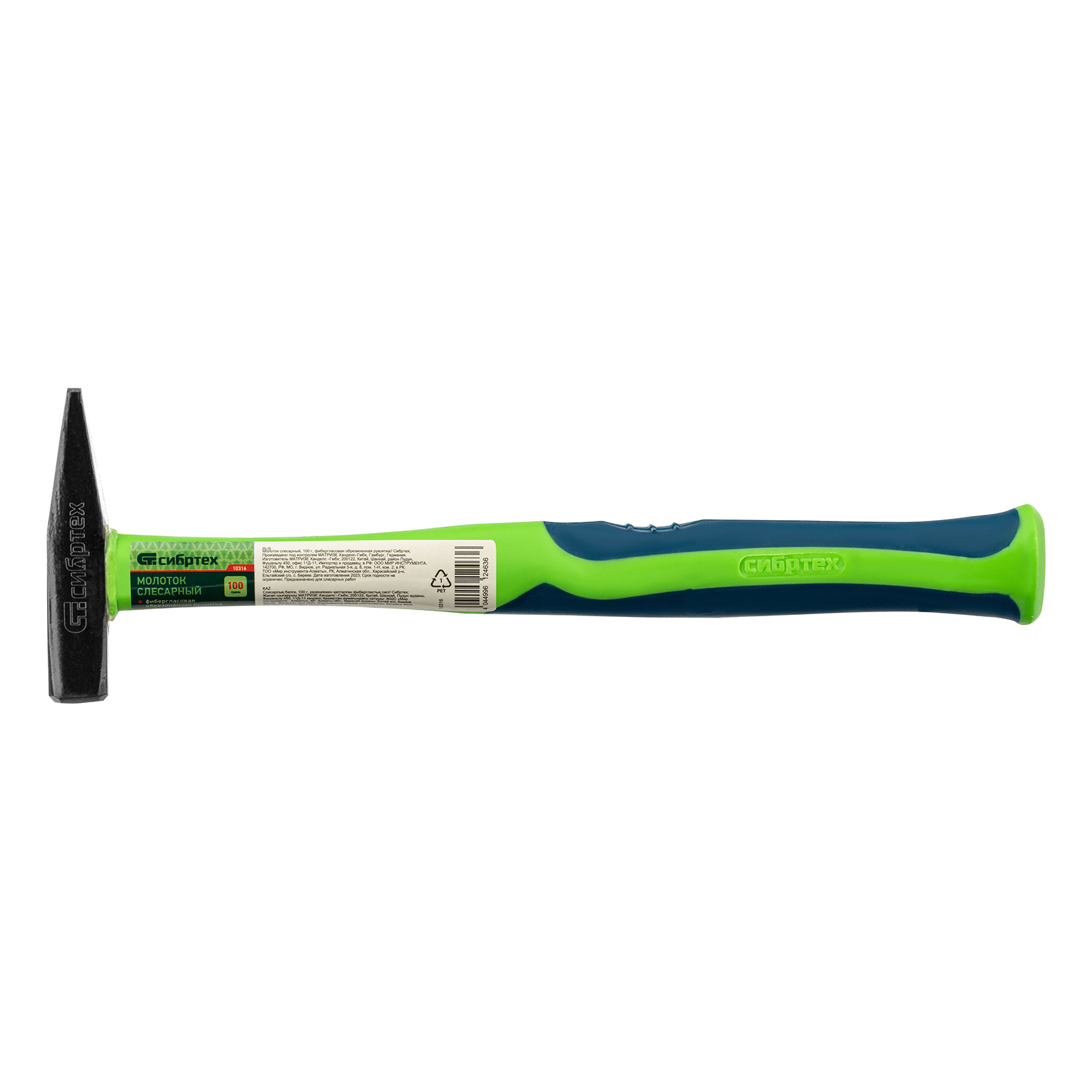 Молоток слесарный, 100 г, фибергласовая обрезиненная рукоятка Сибртех в Краснодаре