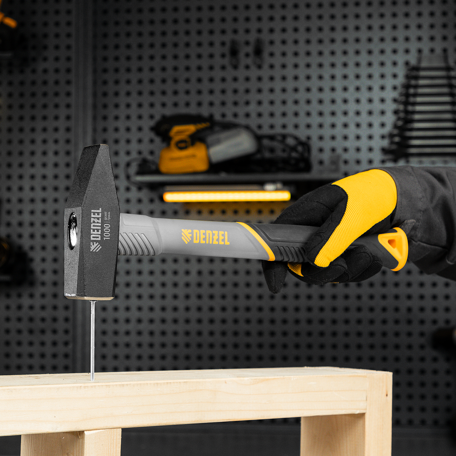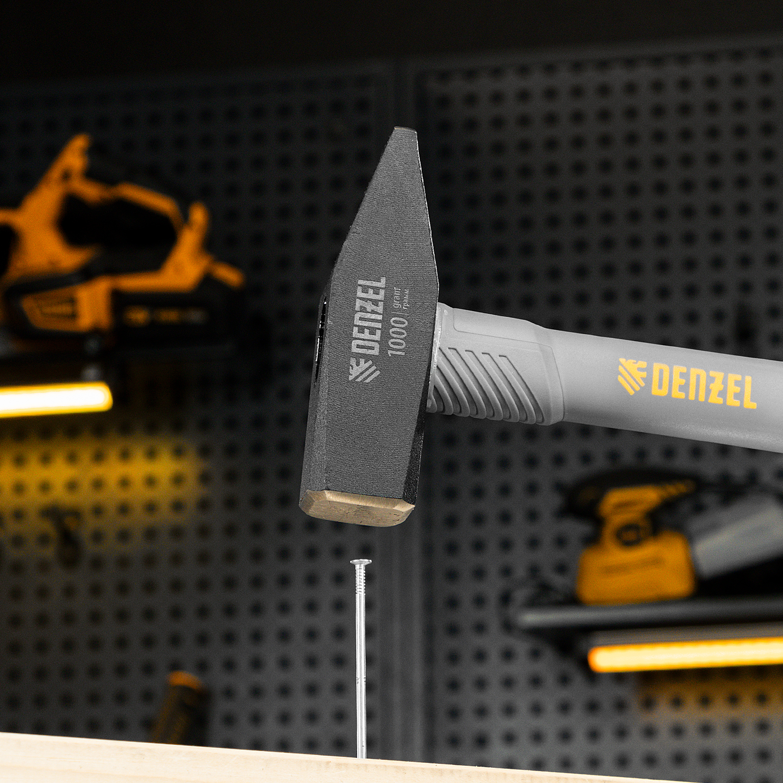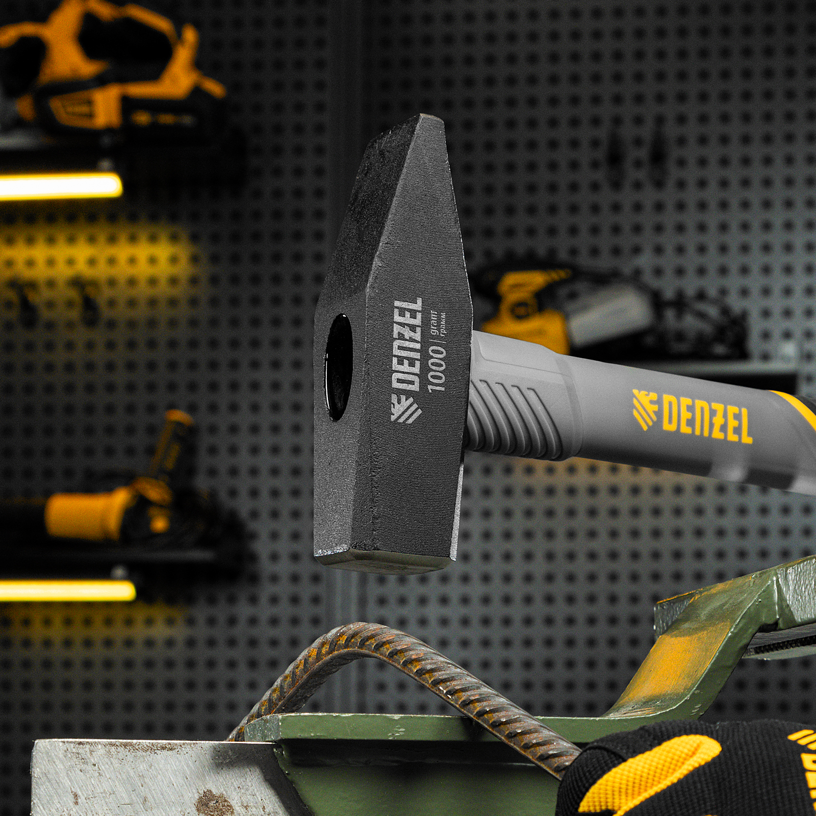 Молоток слесарный, 1000 г, кованый, фибергласовая рукоятка c TPR покрытием Denzel в Краснодаре