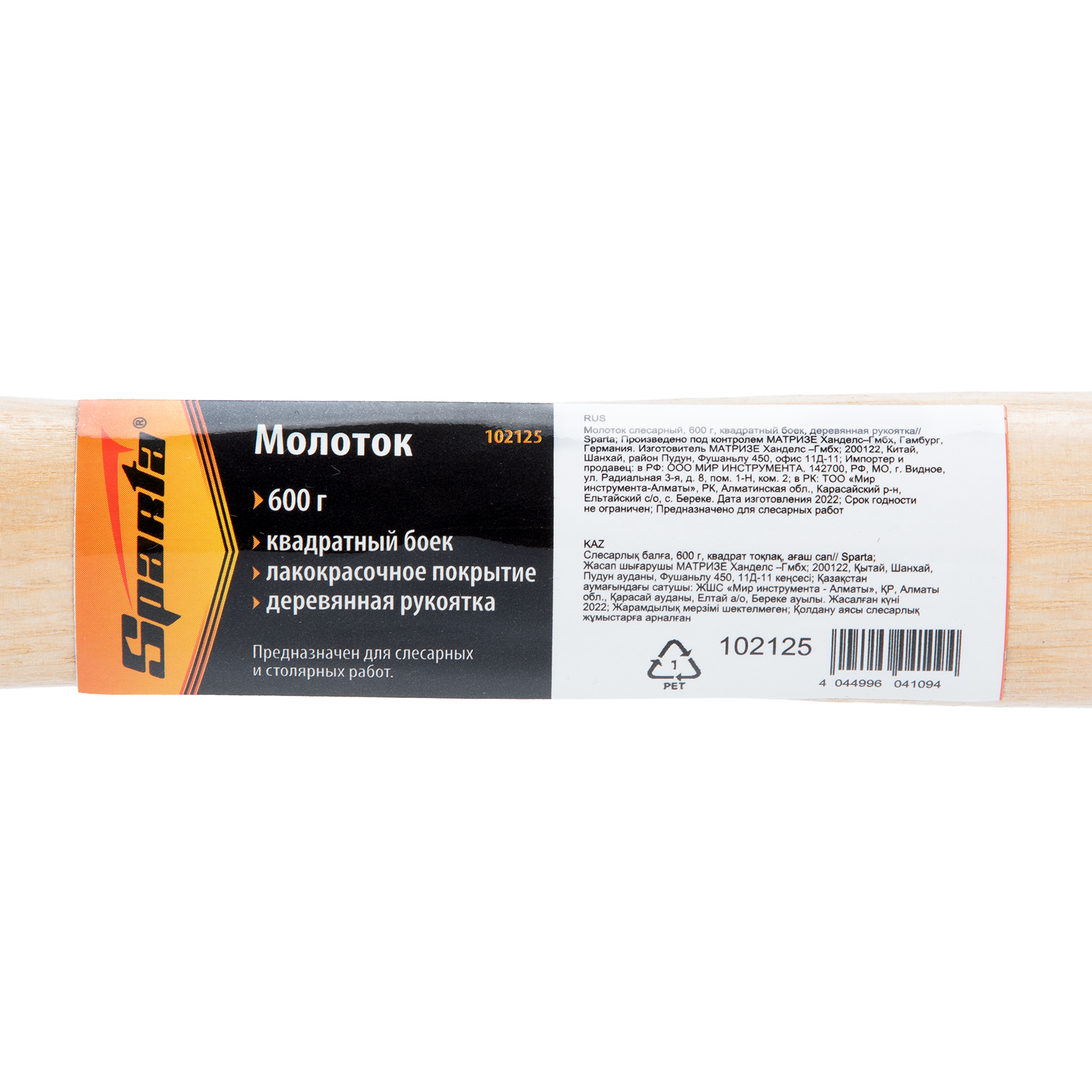 Молоток слесарный, 600 г, квадратный боек, деревянная рукоятка Sparta в Краснодаре