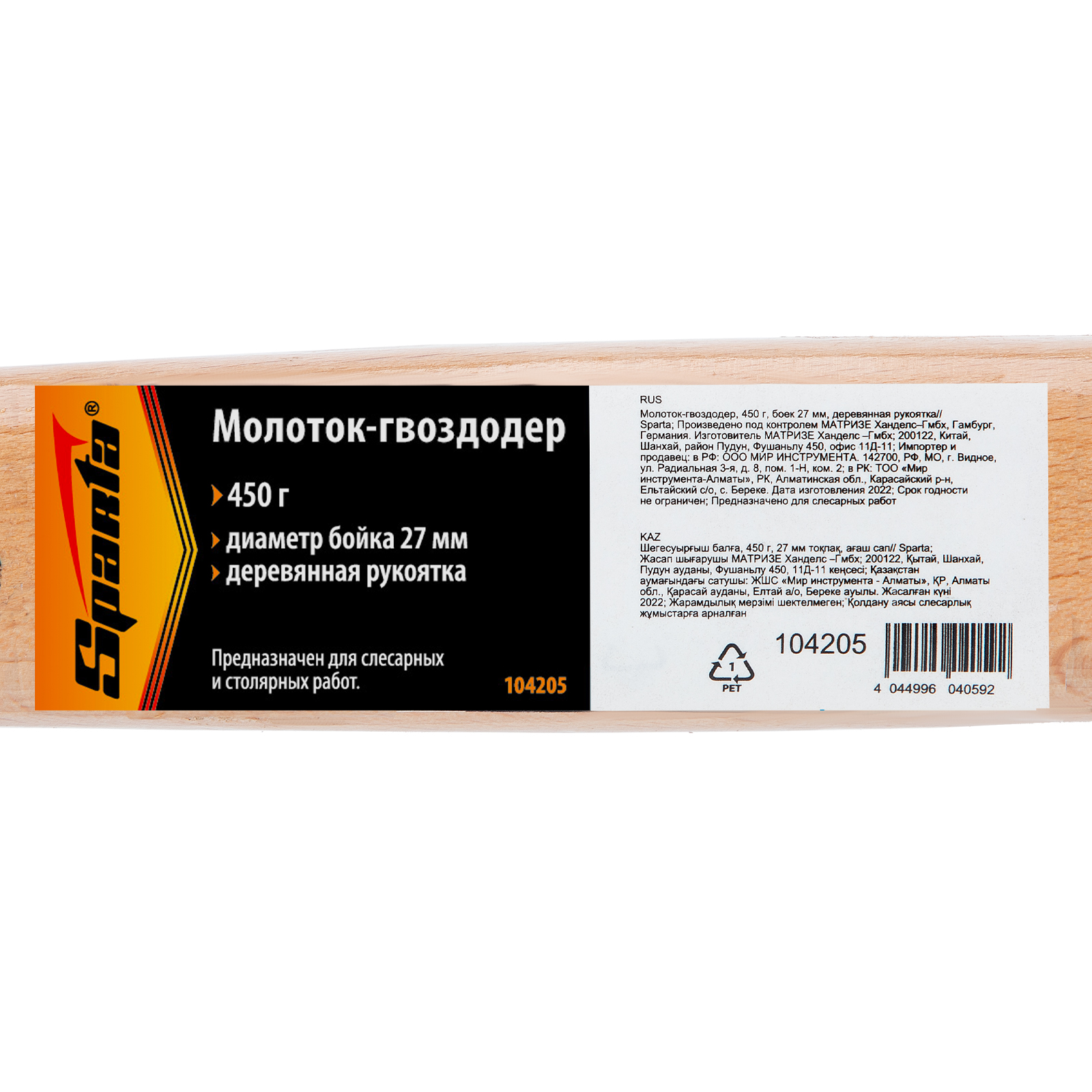 Молоток-гвоздодер Sparta 104205 с головкой весом 450 г и диаметром бойка 27 мм, с деревянной рукояткой, предназначен для слесарных, столярных и отделочных работ, будет полезен при сборке мебели. В носке головки имеется клиновидная прорезь, которая позволяет подцепить шляпку гвоздя. Поэтому молотком можно не только вбить крепеж, но и вытянуть неудачно забитый гвоздь.