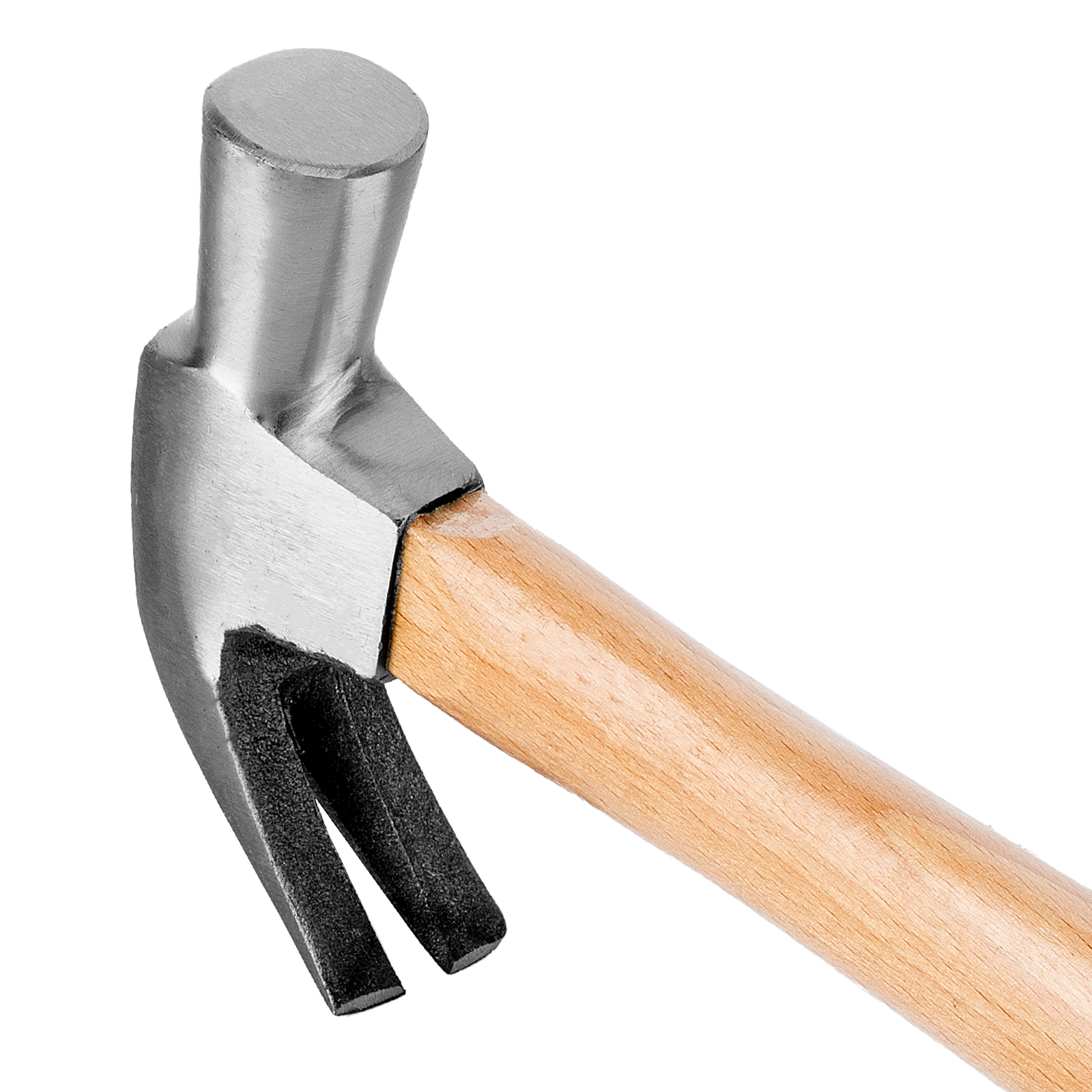 - Продуманная конструкция — увеличенная «юбка» в месте входа рукояти в головку защищает рукоятку от повреждений в случае промаха по гвоздю.