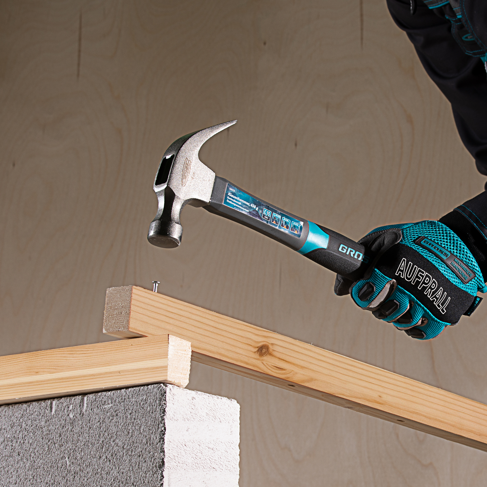 Молоток-гвоздодер, 450 г, фибергласовая трехкомпонентная рукоятка Gross в Краснодаре