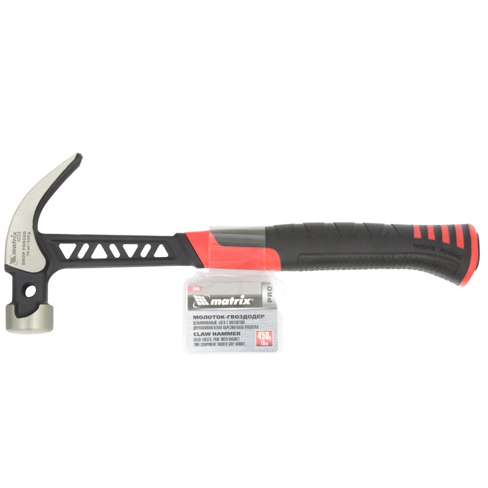 Молоток-гвоздодер, 450 г, цельнокованый, боек с магнитом, двухкомпонентная обрезиненная рукоятка Matrix Pro в Краснодаре
