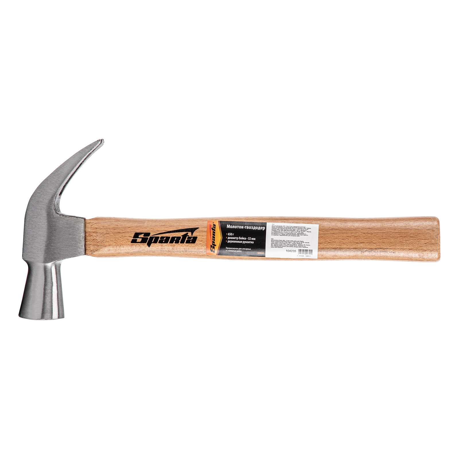 Молоток-гвоздодер, 650 г, боек 32 мм, деревянная рукоятка Sparta в Краснодаре