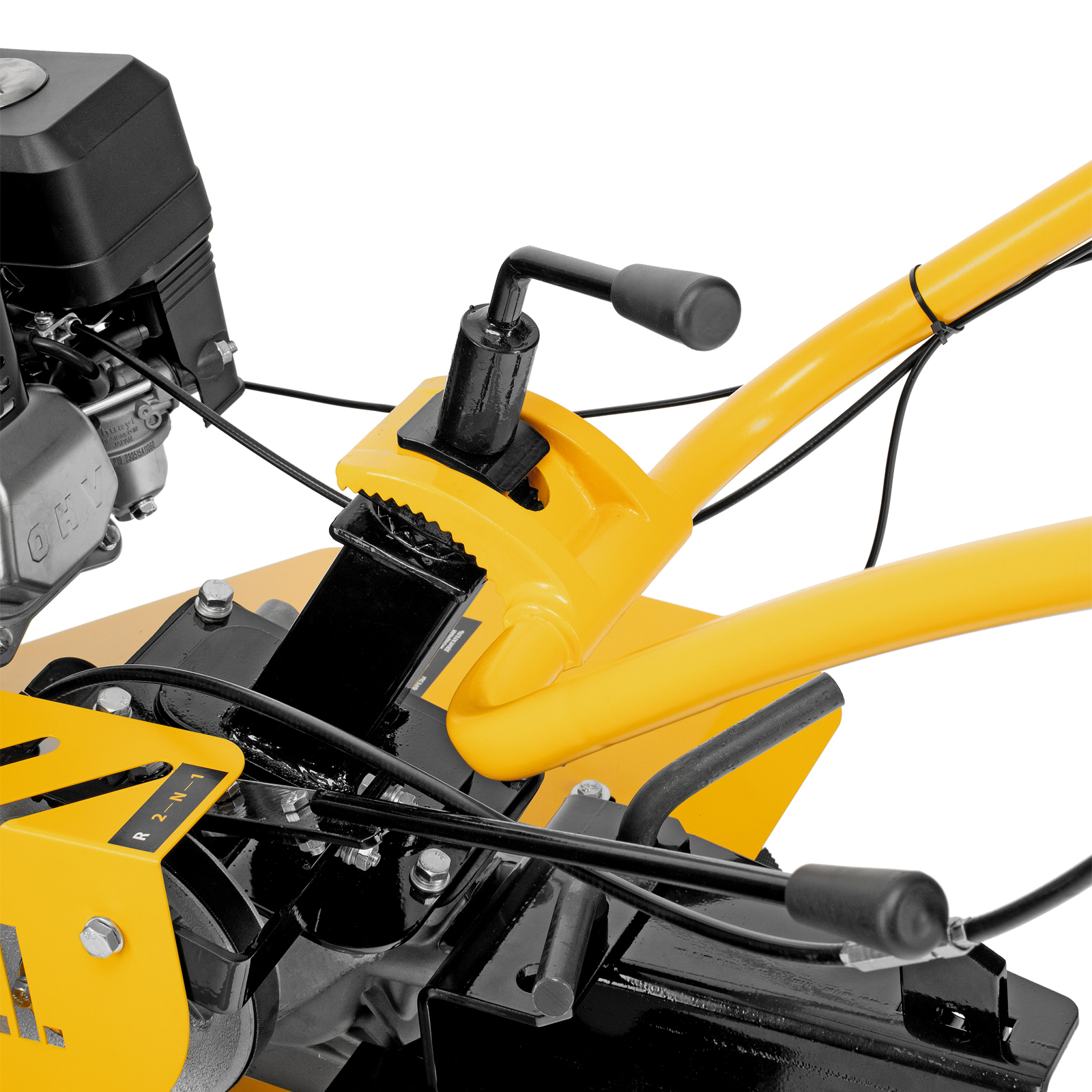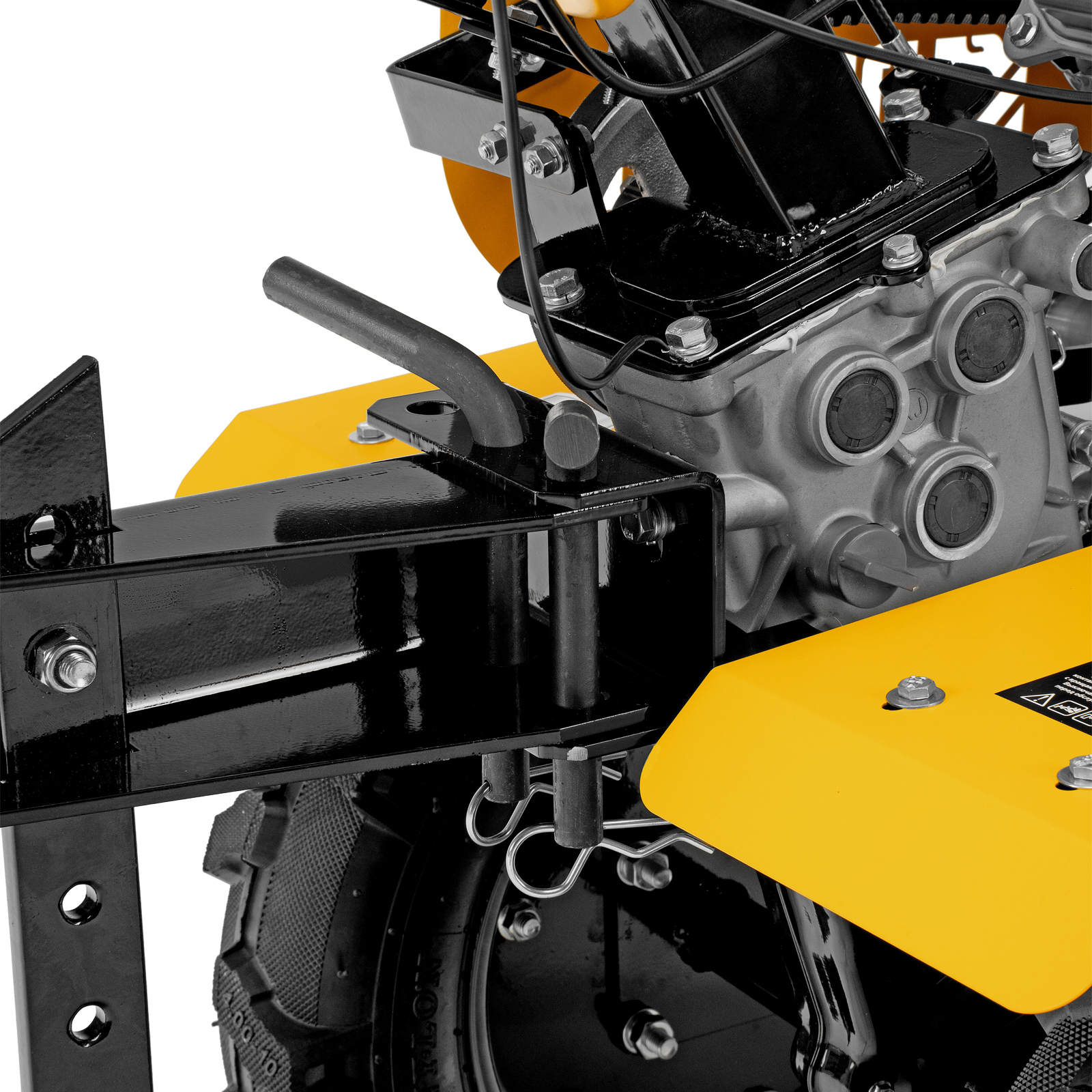 - Удобная работа — основные элементы управления расположены на рукоятках, для включения сцепления и регулировки оборотов двигателя не нужно наклоняться.