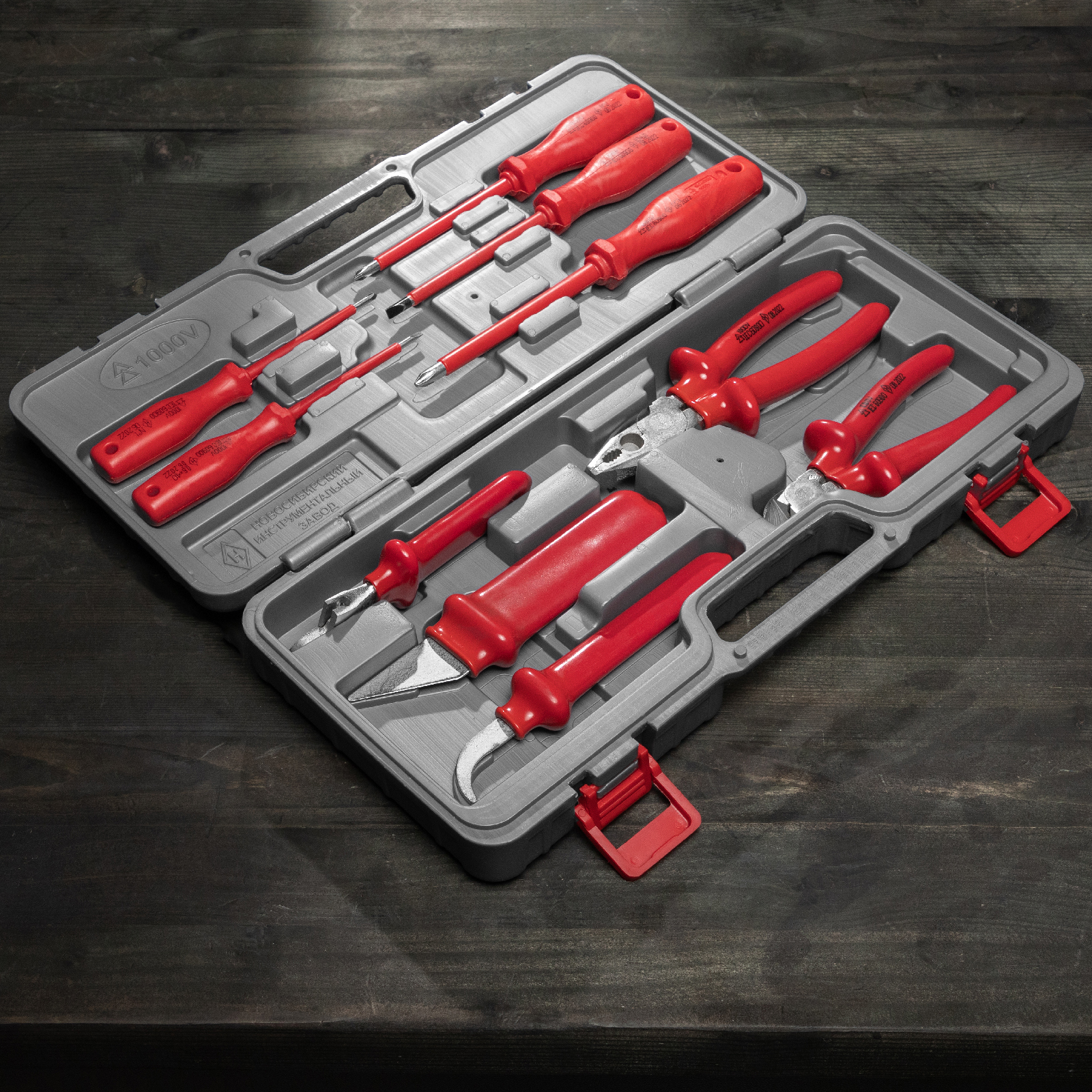 Отвертки плоские - 2 штОтвертки крестообразные - 3 штКлюч разводной - 1 штНож кабельный - 1 штНож прямой - 1 штПлоскогубцы - 1 штБокорезы - 1 штКейс - 1 шт |