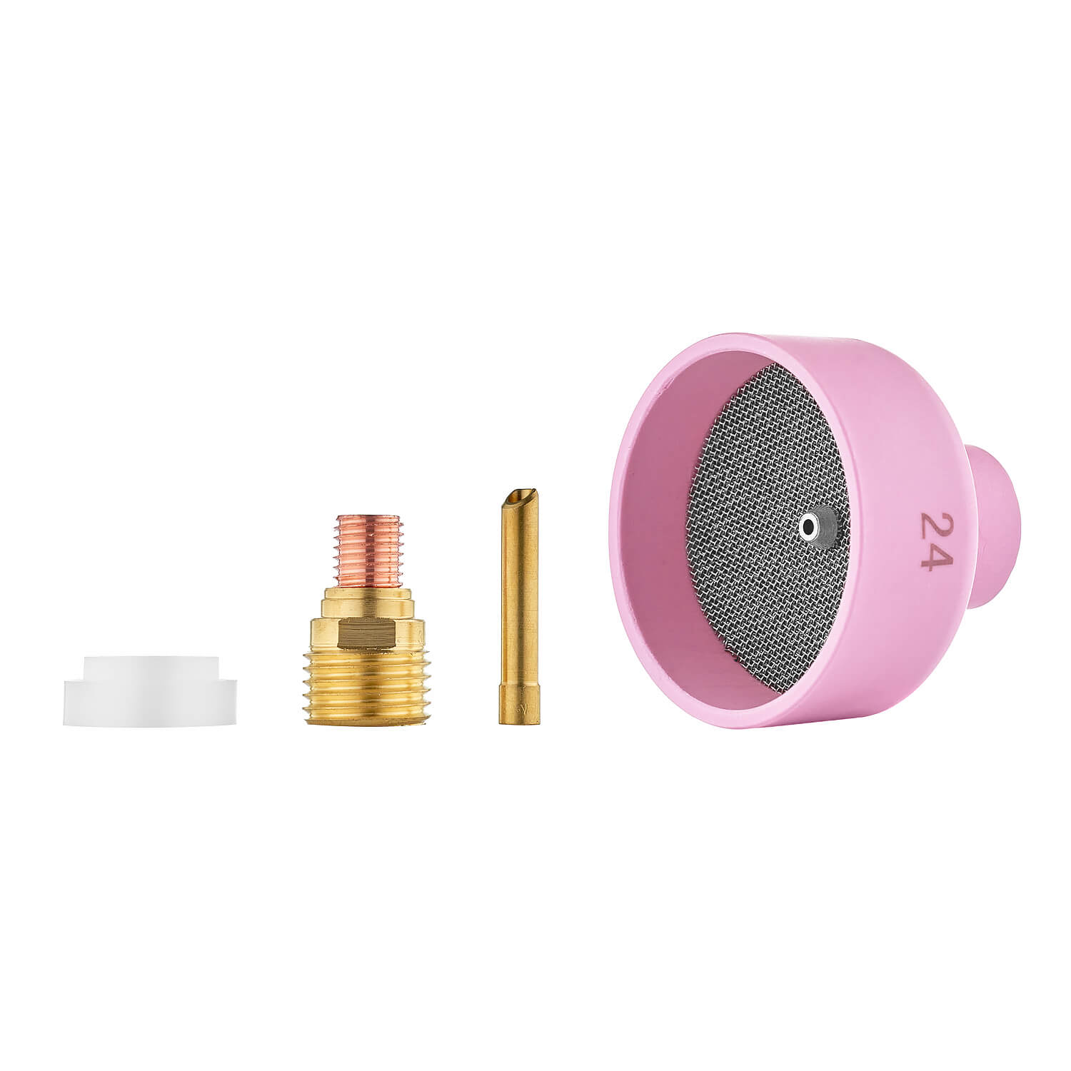 Особенность набора CLS0936 заключается в керамическом сопле со встроенной газовой сеткой. Внутренний диаметр чашки составляет 38 мм. Сопло с сеткой в сочетании с газовой линзой, создает равномерный ламинарный поток. Распределяет выходящий газ по всей окружности сопла, создавая высокий уровень защиты сварочной ванны.