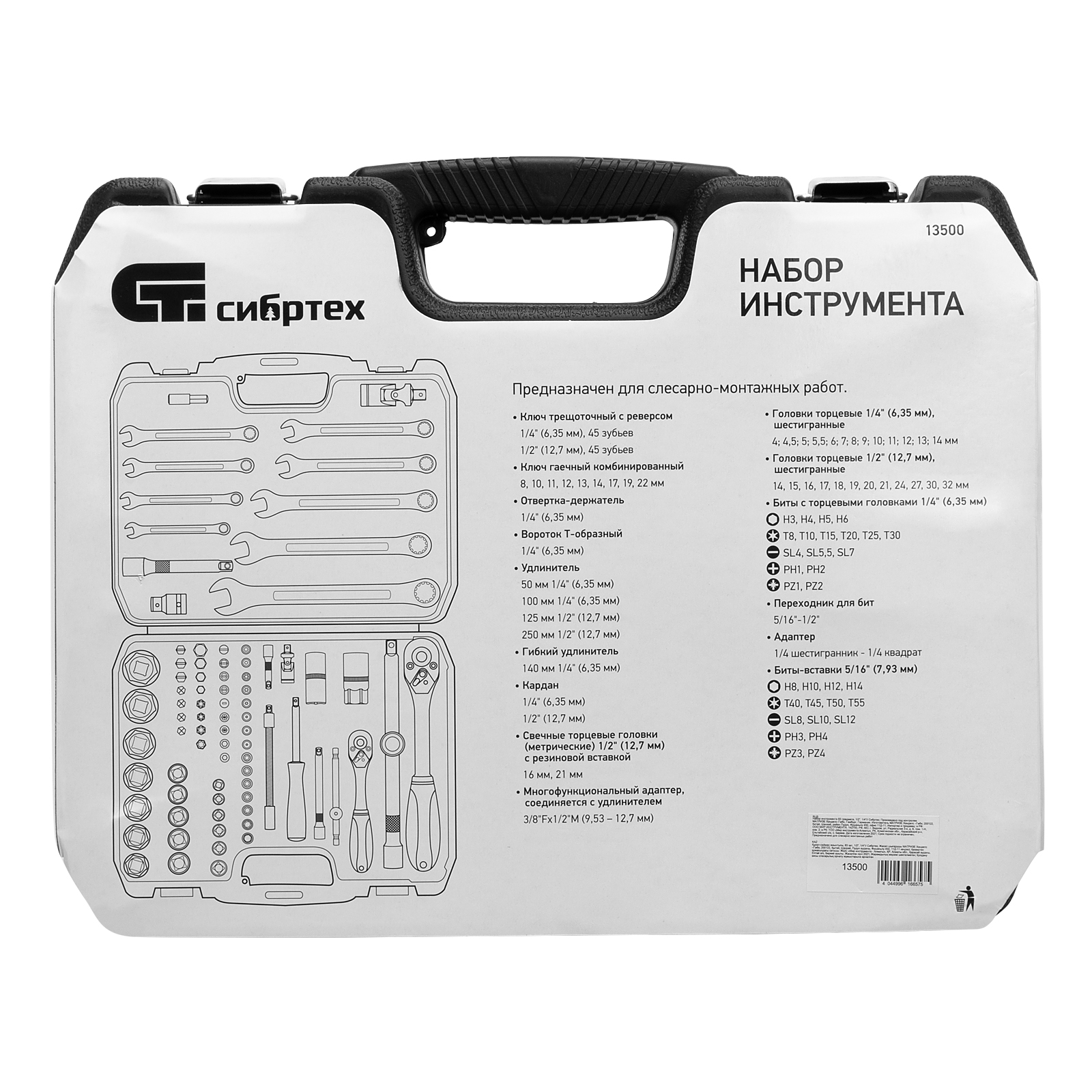 Набор инструмента, 1/2", 1/4", пластиковый кейс, 83 предмета Сибртех в Краснодаре