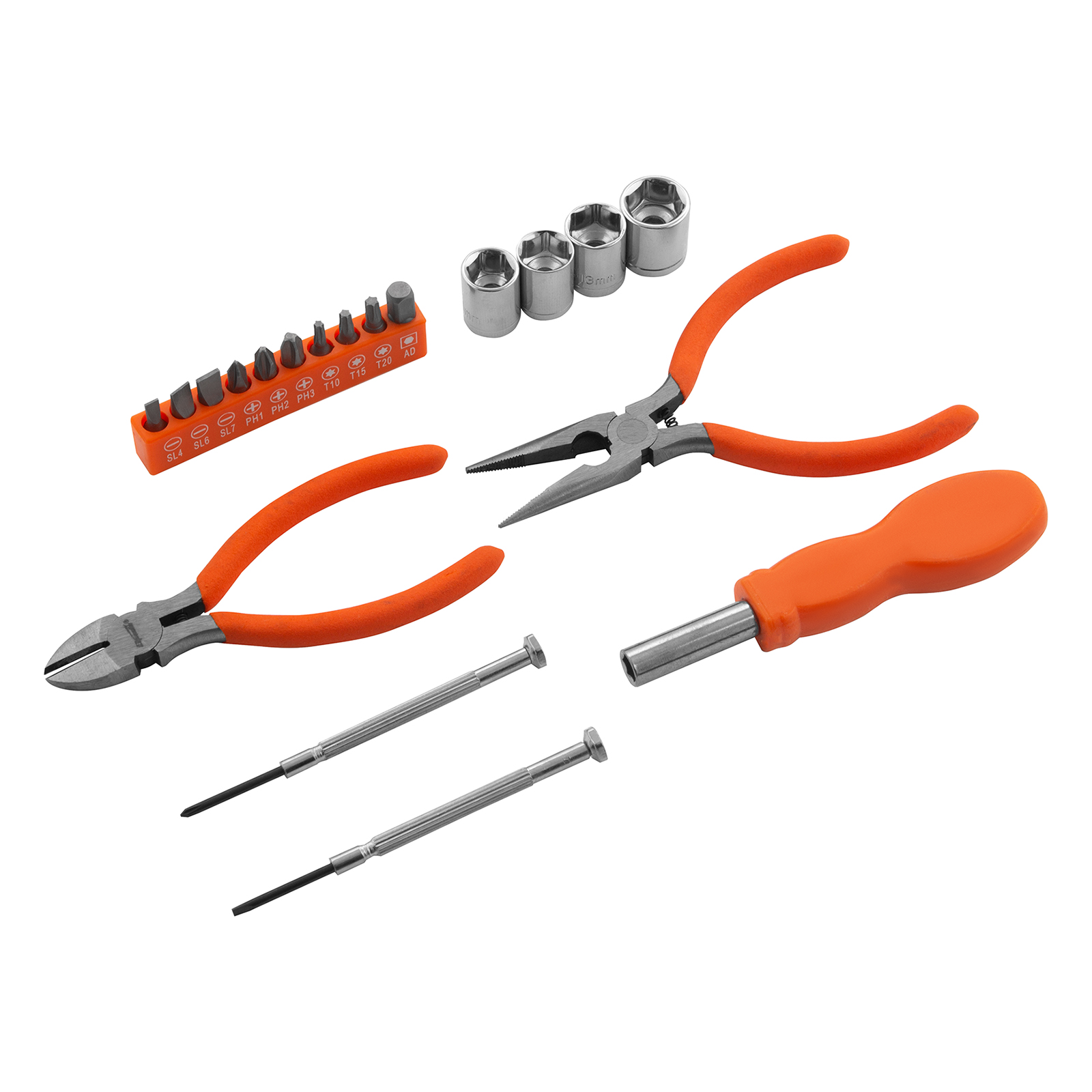 Набор Sparta 13546 из 19 предметов используется для проведения слесарно-монтажных работ. В комплект входят отвертки для точных работ, отвертка для бит, биты и торцевые головки для монтажа/демонтажа крепежных элементов, бокорезы и длинногубцы для захвата, удержания и перекусывания проводов и мелких деталей. Набор будет полезен дома и в частной мастерской.