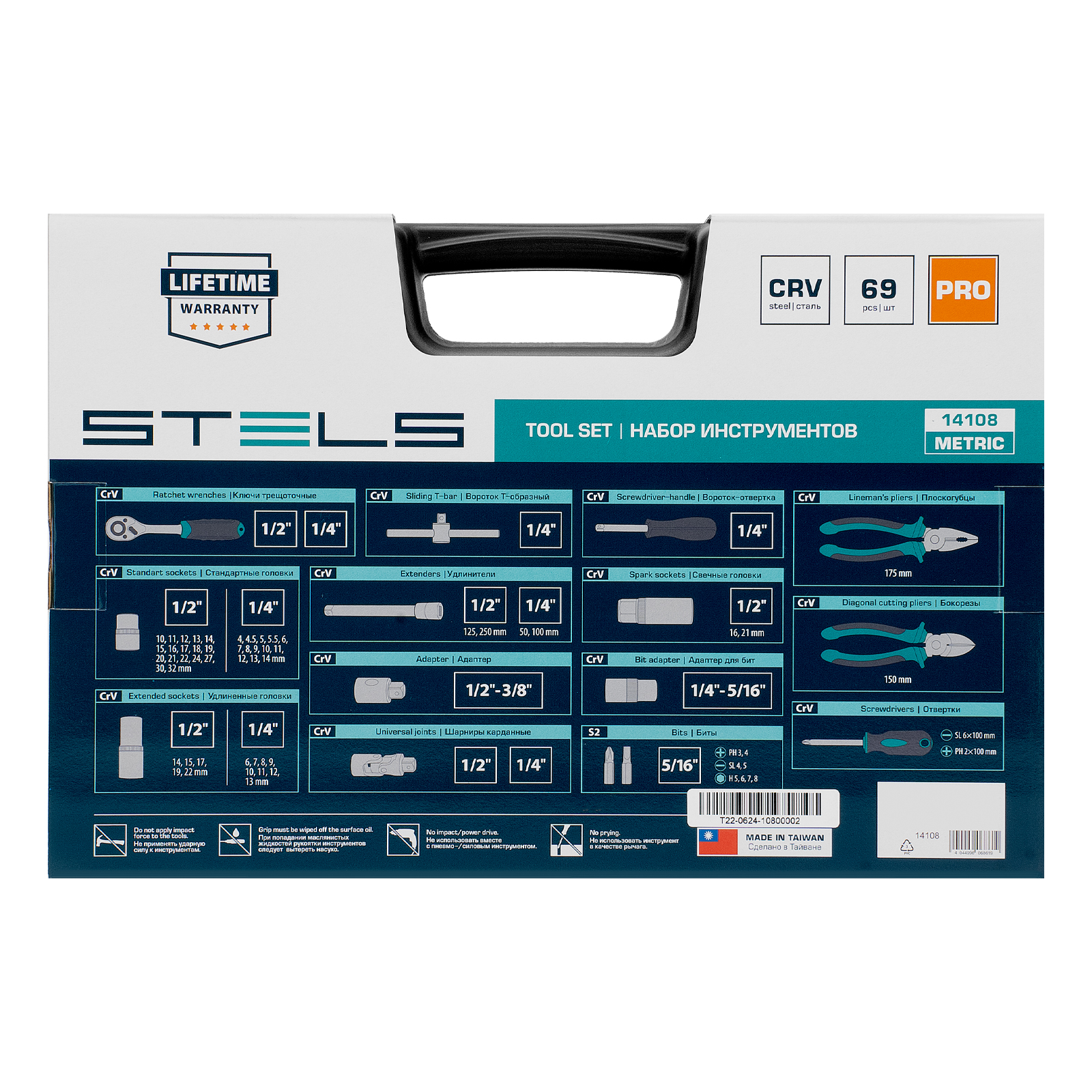 Набор инструментов, 1/2", 1/4", CrV, пластиковый кейс 69 предметов Stels в Краснодаре
