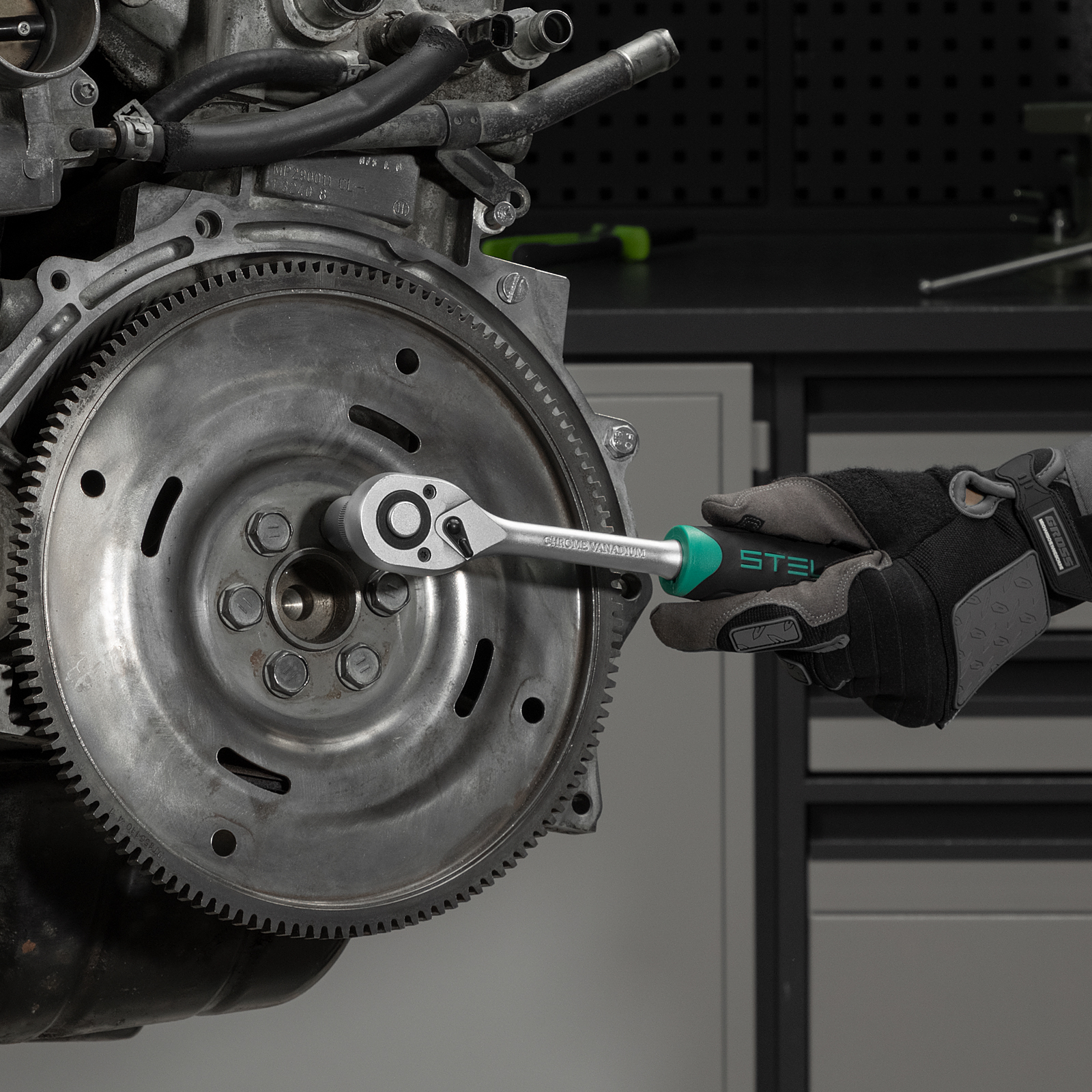 - Комфортная работа в труднодоступных местах — в набор входят ключи-трещотки с 72 зубьями, рабочий шаг составляет всего 5°.
