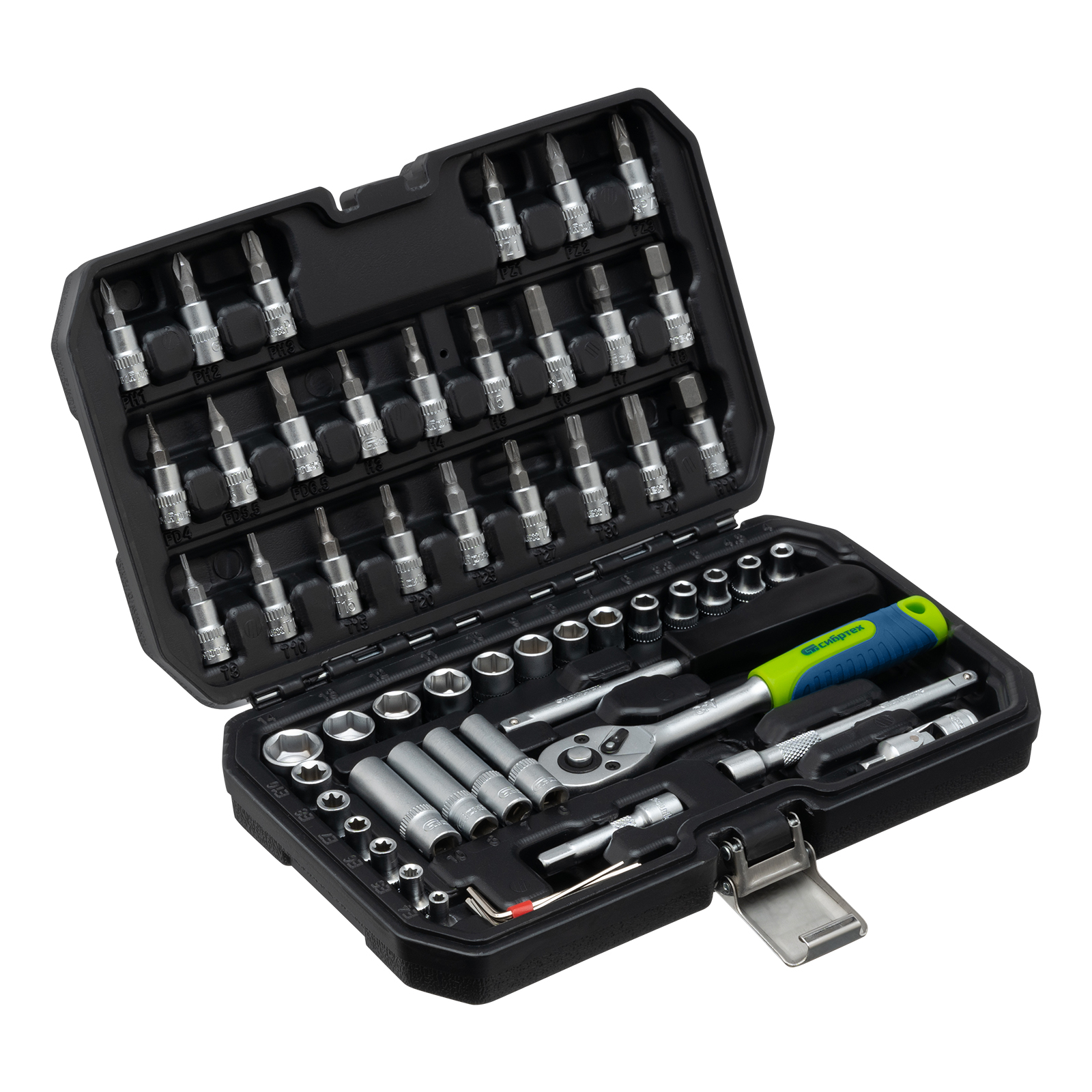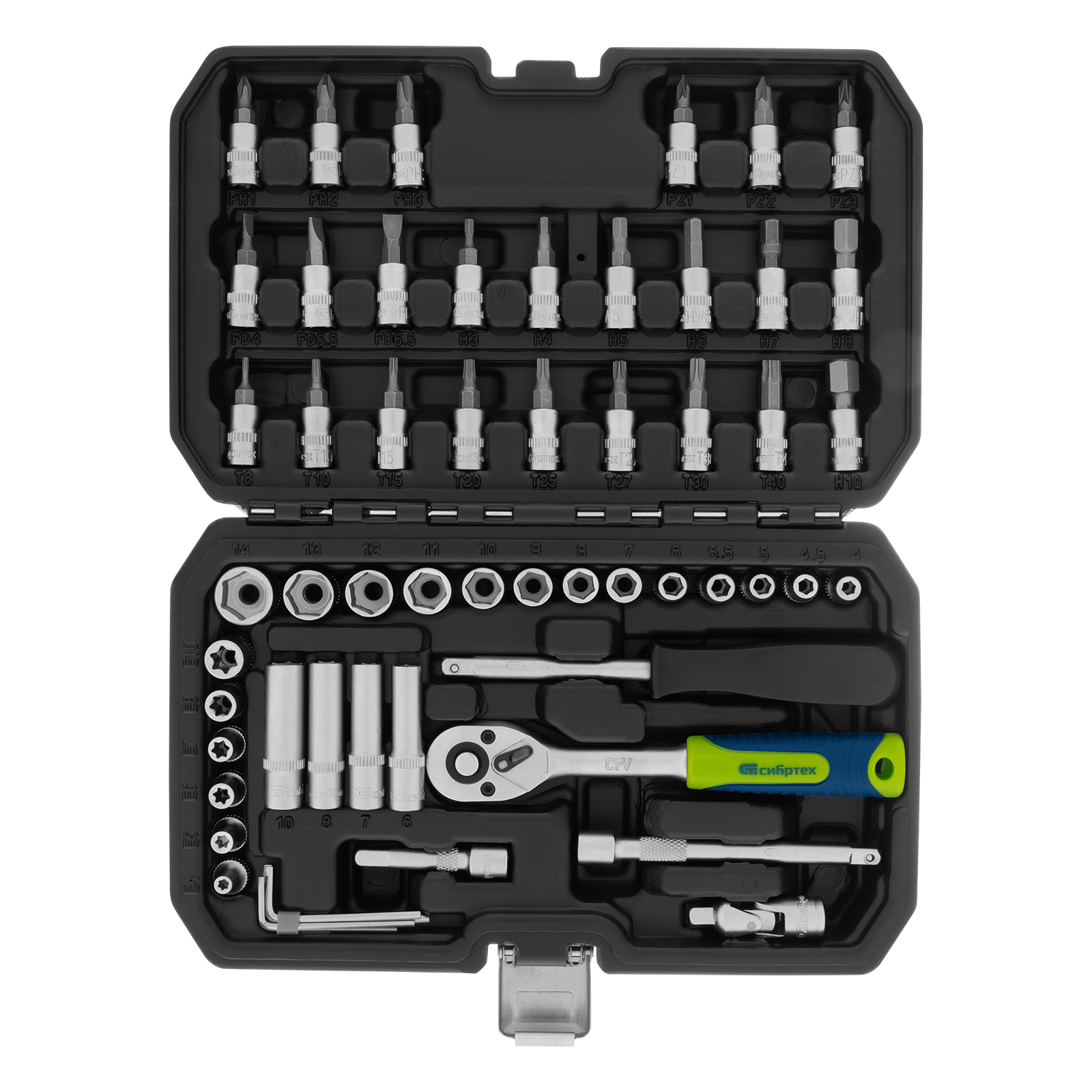 Набор инструментов, 1/4", пластиковый кейс 56 предметов Сибртех в Краснодаре
