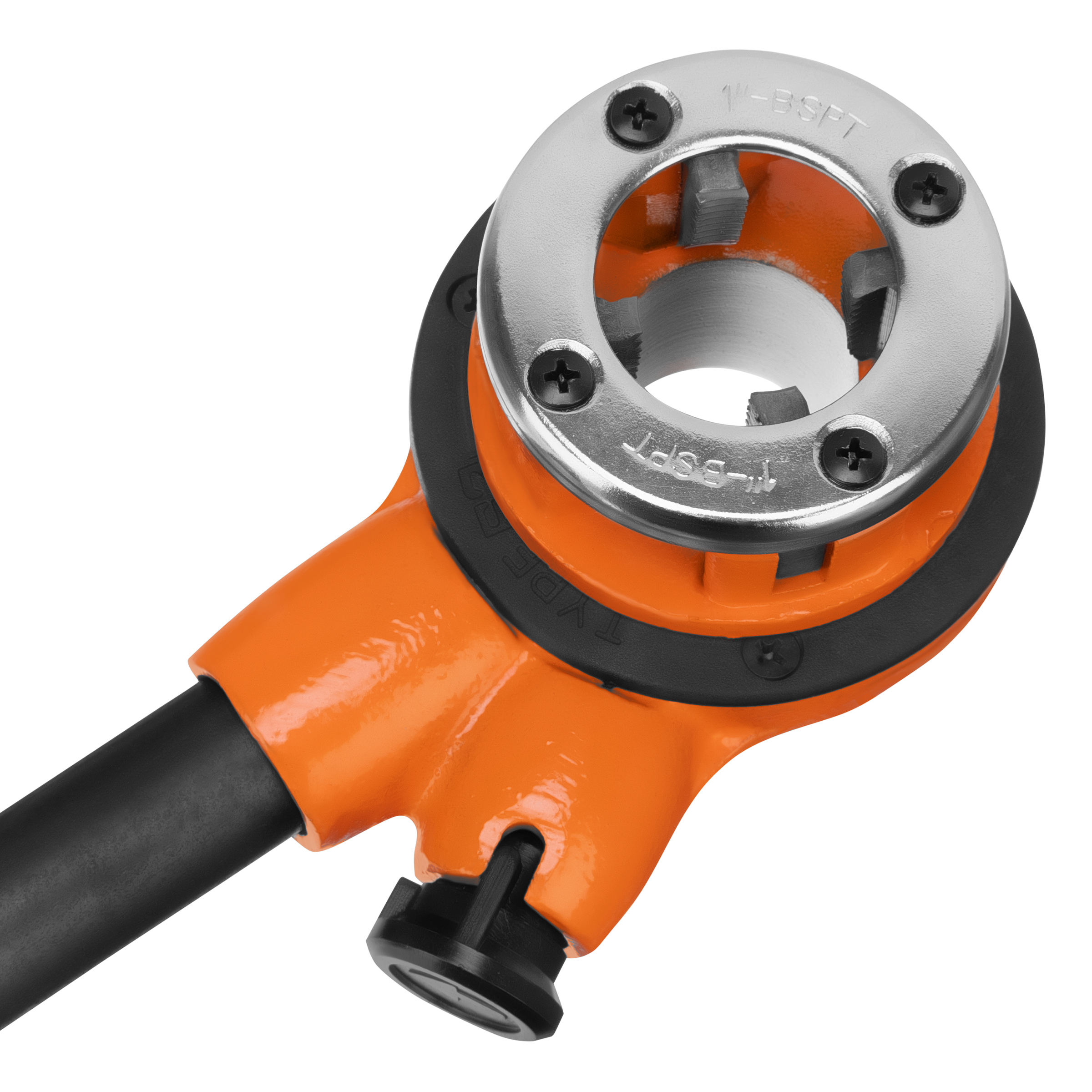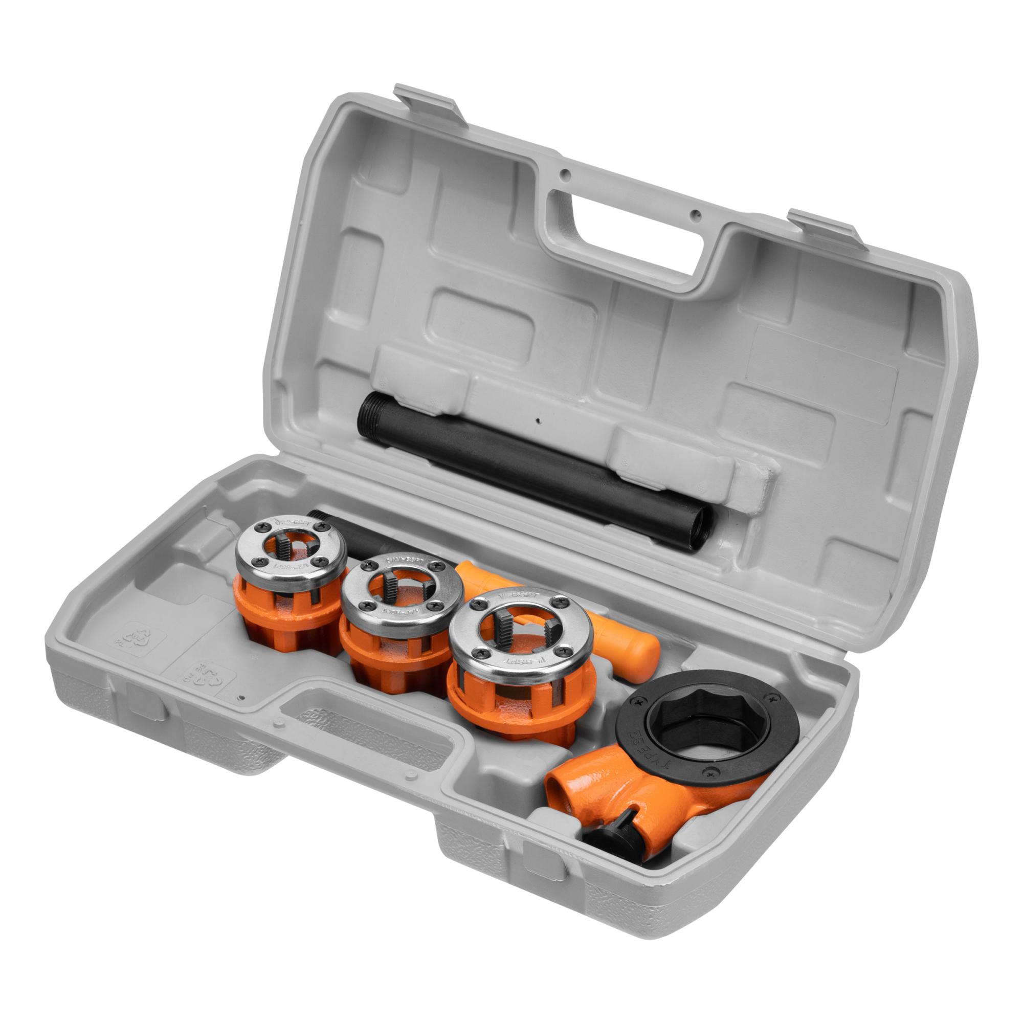 Набор Sparta 773335 включает в себя 6 предметов: клуппы наиболее востребованных размеров 1/2″, 3/4″ и 1″, а также плашкодержатель с трещоткой и удлинителем. Пригодится частному мастеру для нарезания внешней резьбы на новых трубах или ремонта старых. Плашкодержатель оснащен трещоточным механизмом, который наиболее эффективно передает рабочее усилие, а также позволяет работать в труднодоступных местах.
