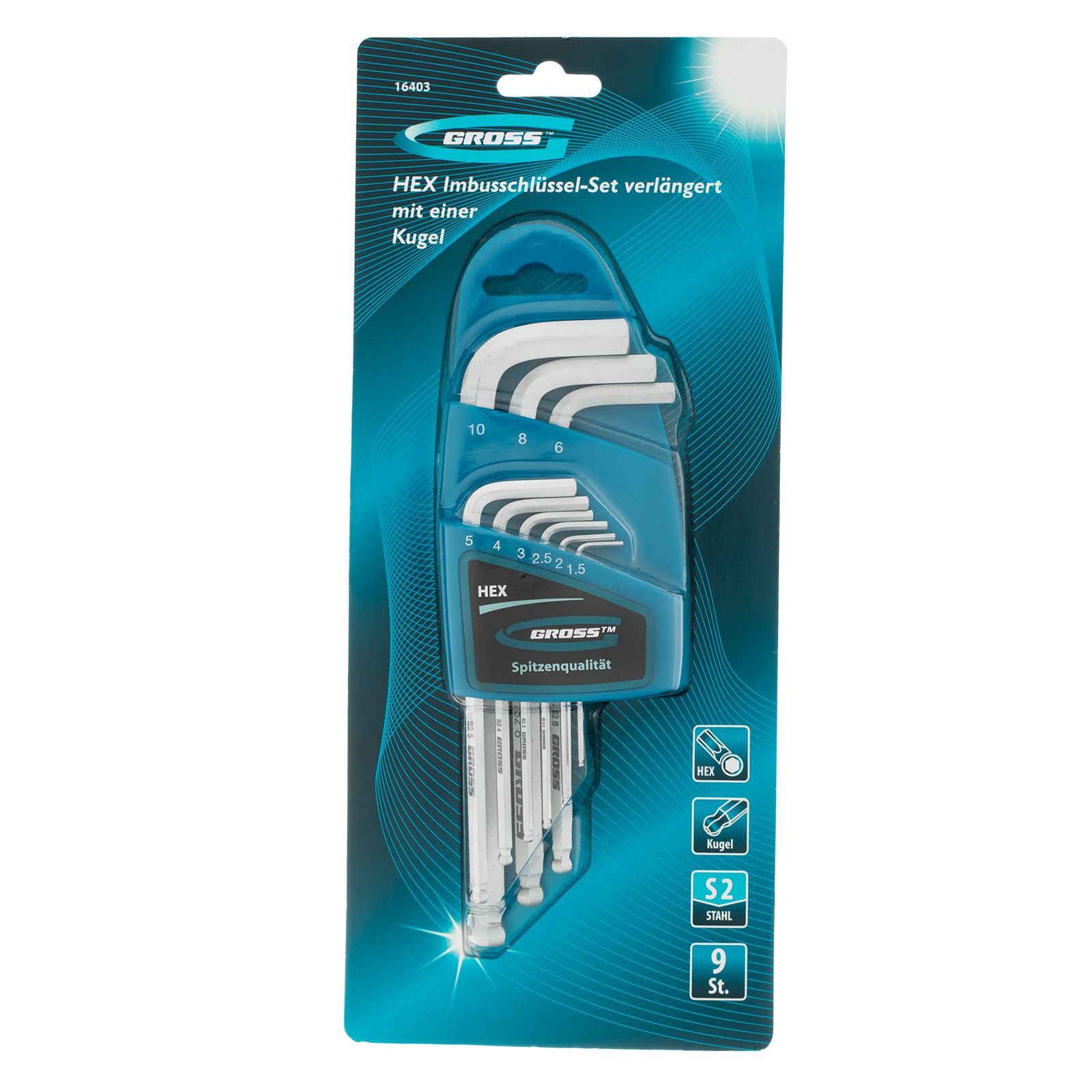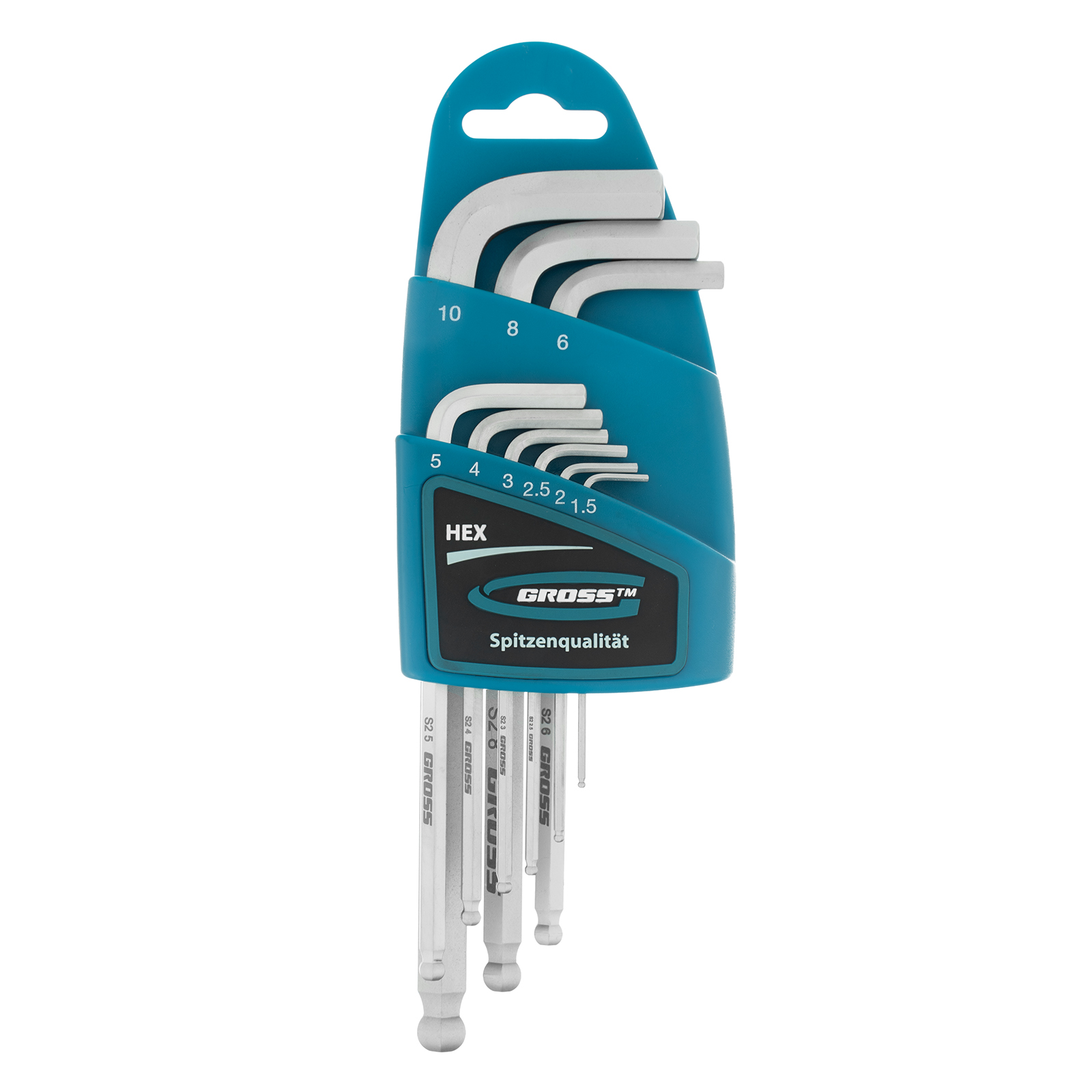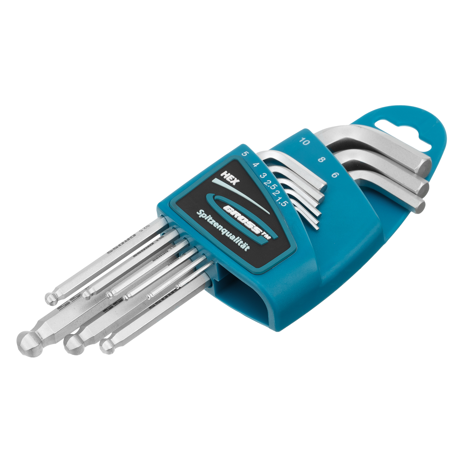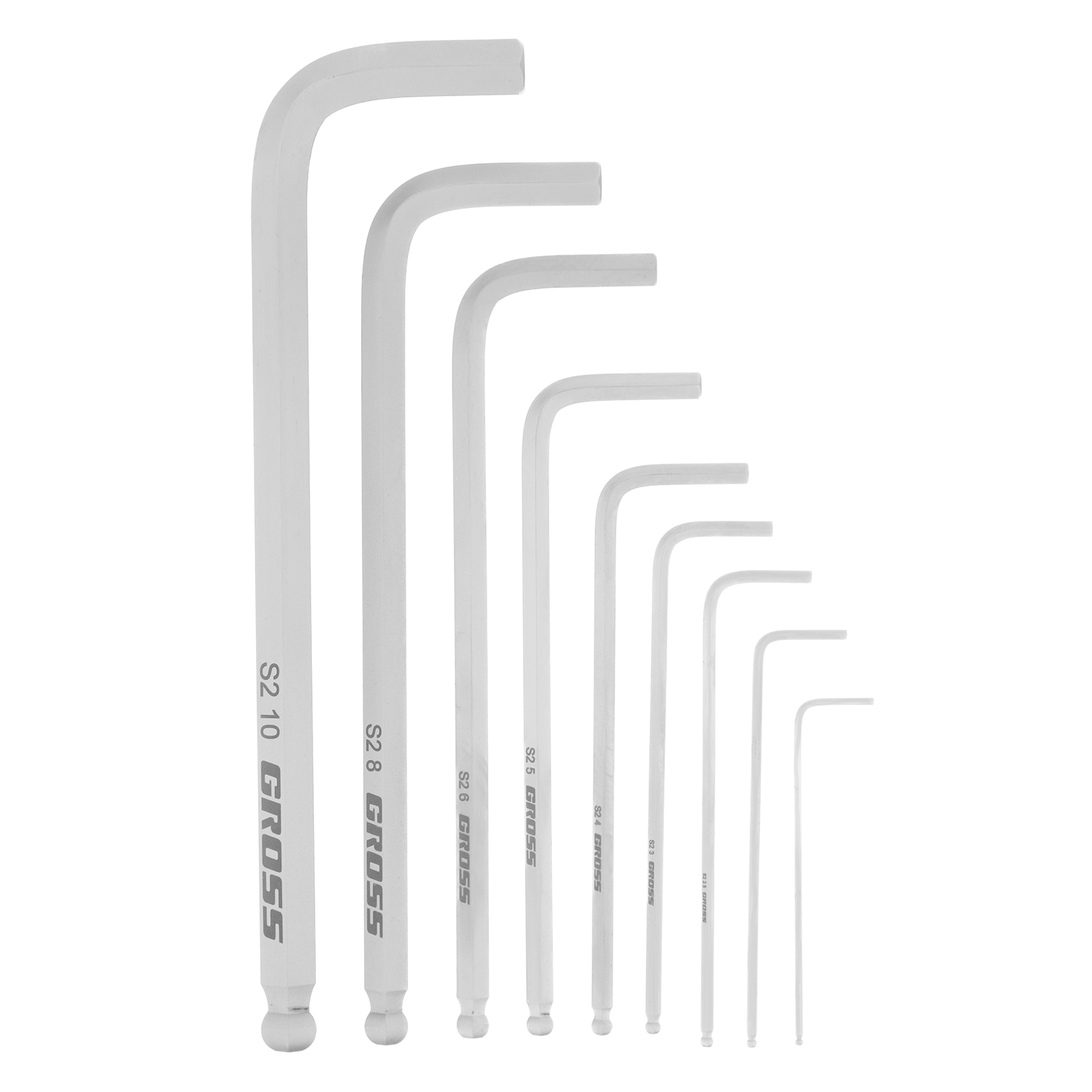 Набор ключей имбусовых HEX, 1.5-10 мм, S2, 9 шт, удлиненные с шаром, сатинированные Gross в Краснодаре