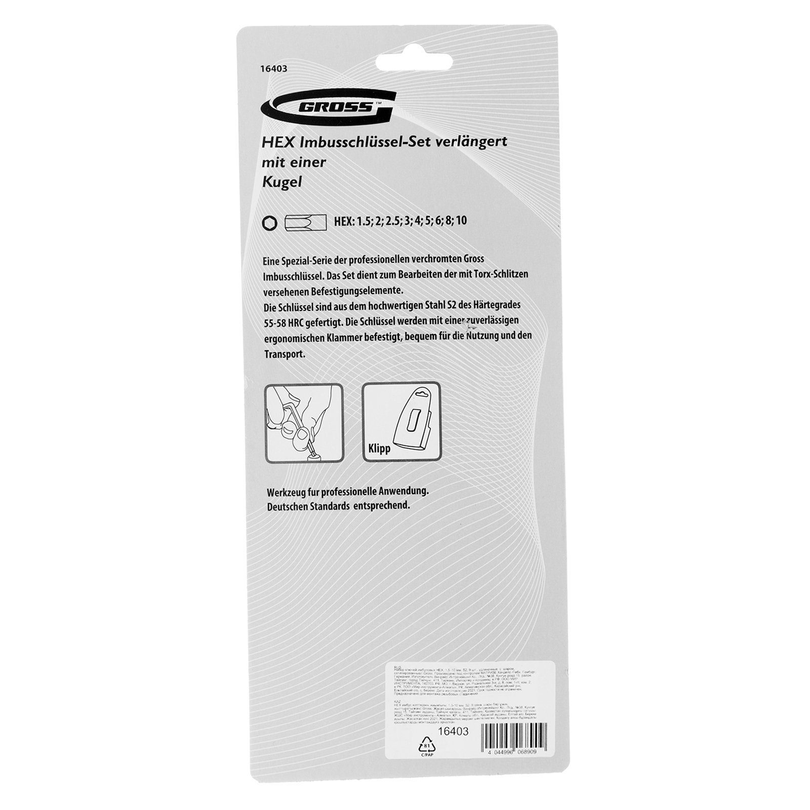 Набор Gross 16403 из стали S2 включает в себя 9 удлиненных сатинированных имбусовых ключей с шаром, предназначенных для закручивания и откручивания крепежа со шлицами HEX 1,5-10 мм. Благодаря увеличенной длине и Г-образной форме инструментами удобно работать в труднодоступных местах без лишних усилий. Набор пригодится в быту, при сборке мебели, ремонте велосипедов и т.д..