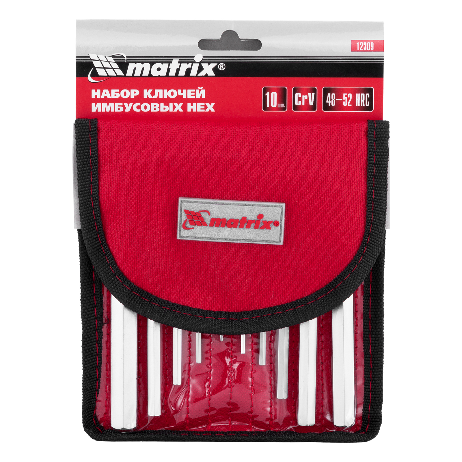 Набор ключей имбусовых HEX, 1.5-12 мм, CrV, 10 шт, короткие, сатин, чехол Matrix в Краснодаре