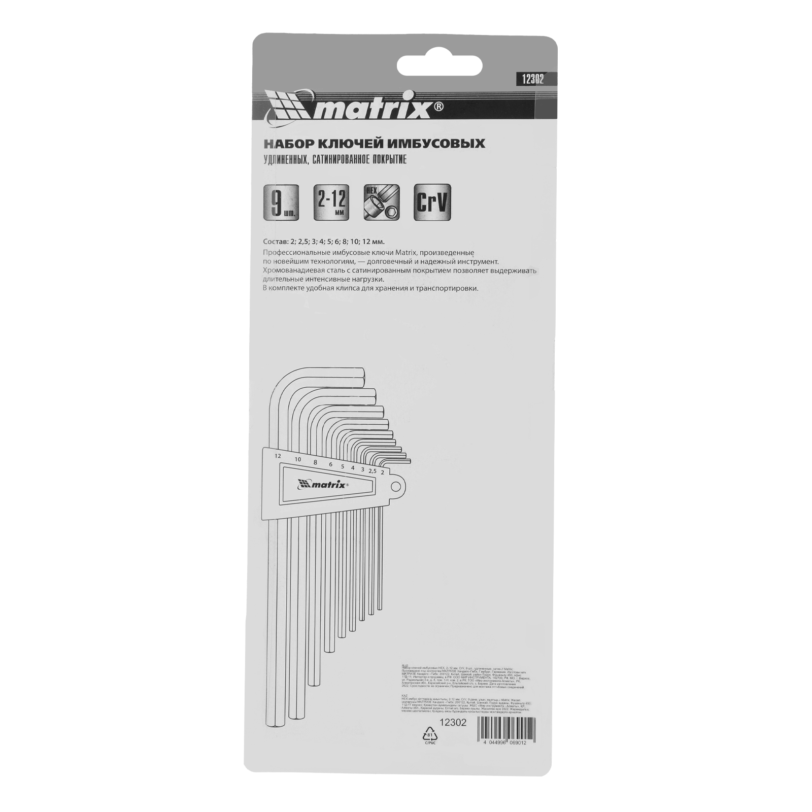 Набор ключей имбусовых HEX, 2-12 мм, CrV, 9 шт, удлиненныее с сатинированным покрытием Matrix в Краснодаре