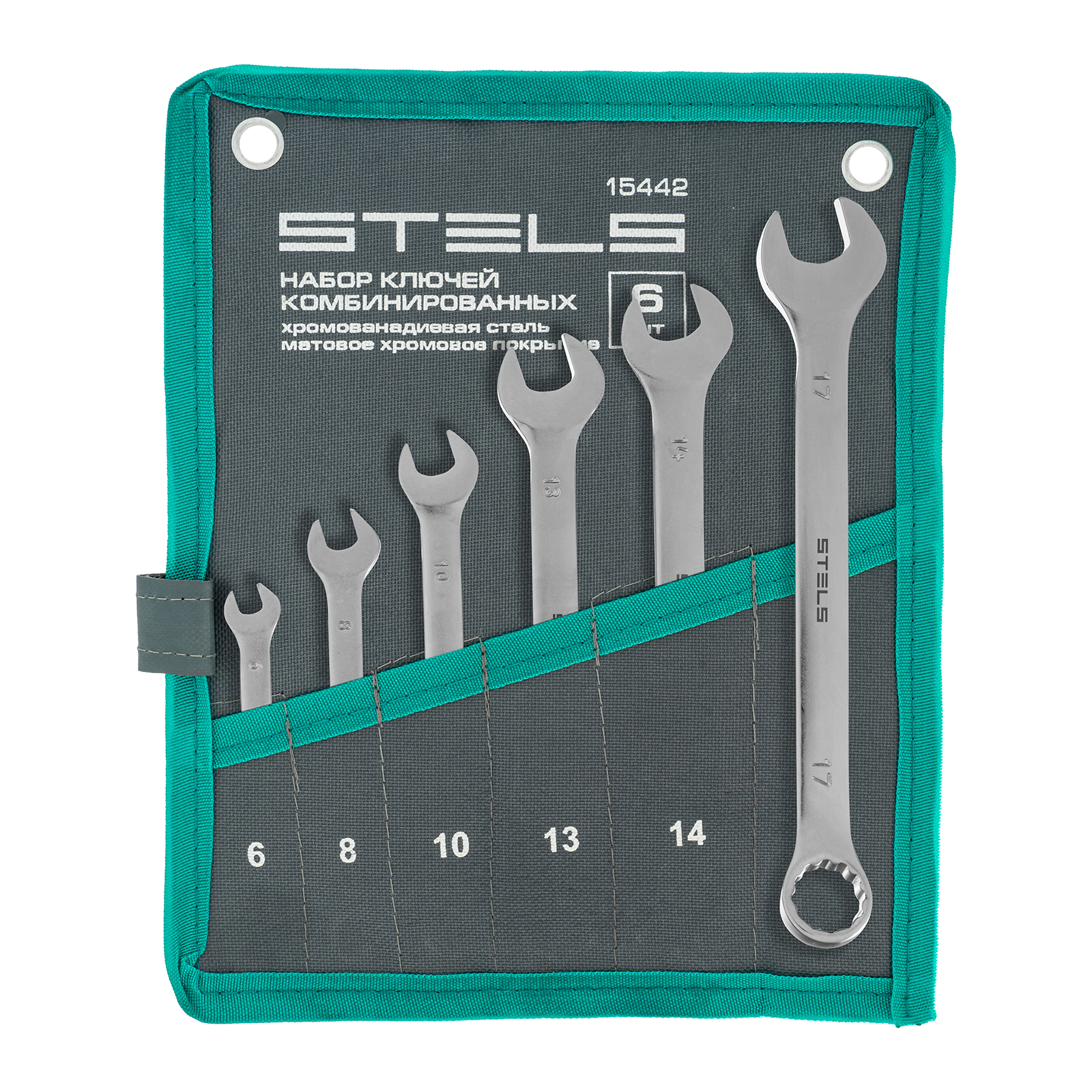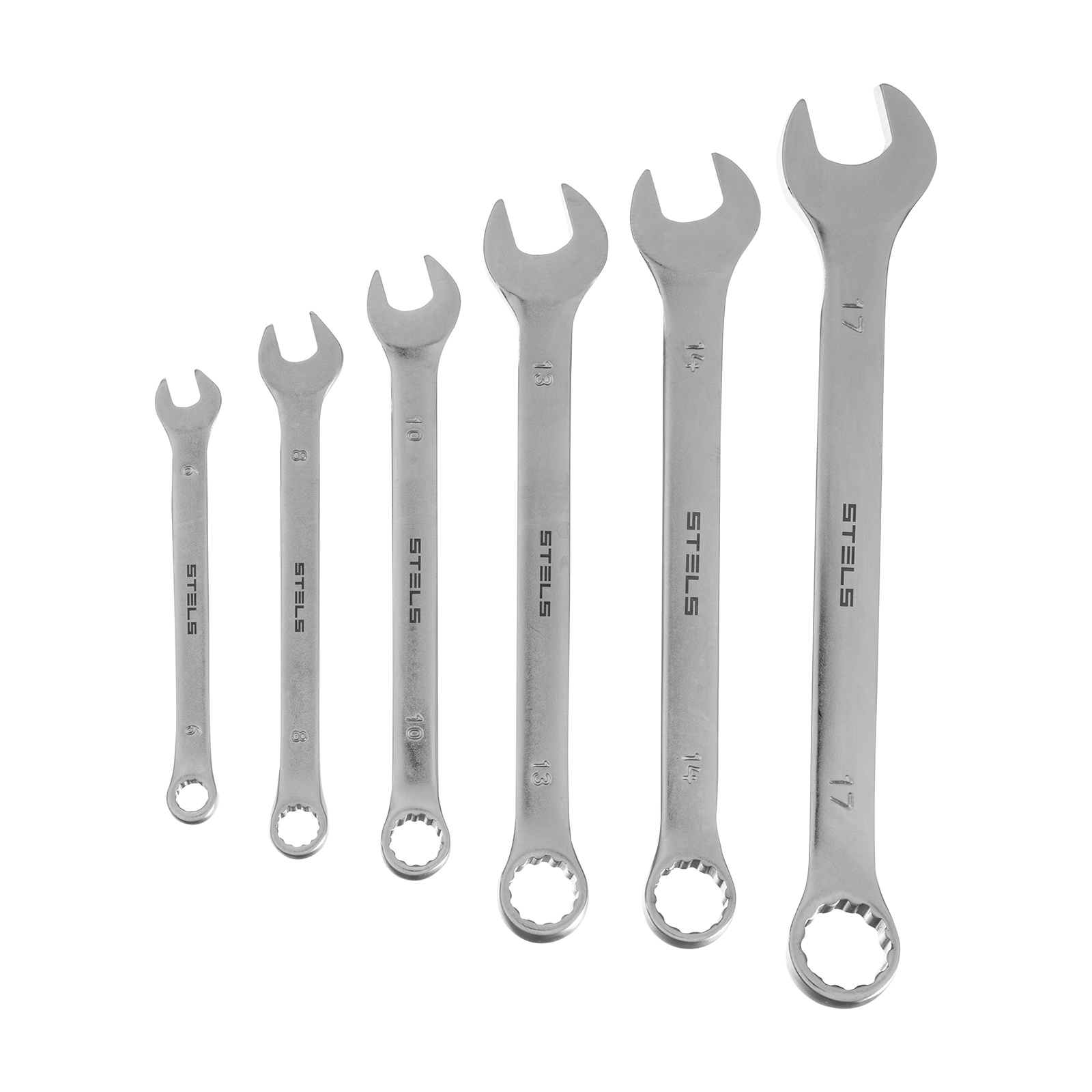 Набор ключей комбинированных 6-17 мм, 6 шт., CrV, матовый хром Stels в Краснодаре