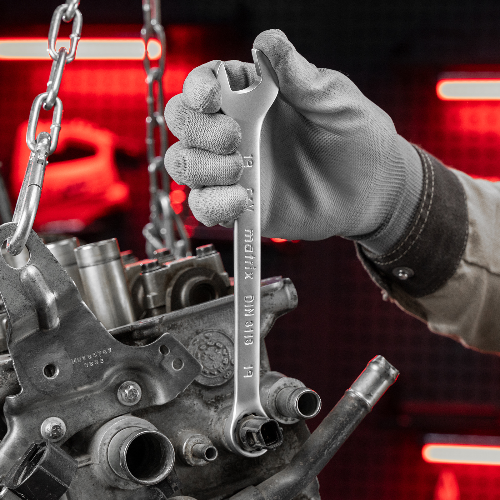 - Аккуратная работа — накидные части с 12-гранным профилем охватывают всю поверхность крепежа, уменьшая риск деформации его граней.