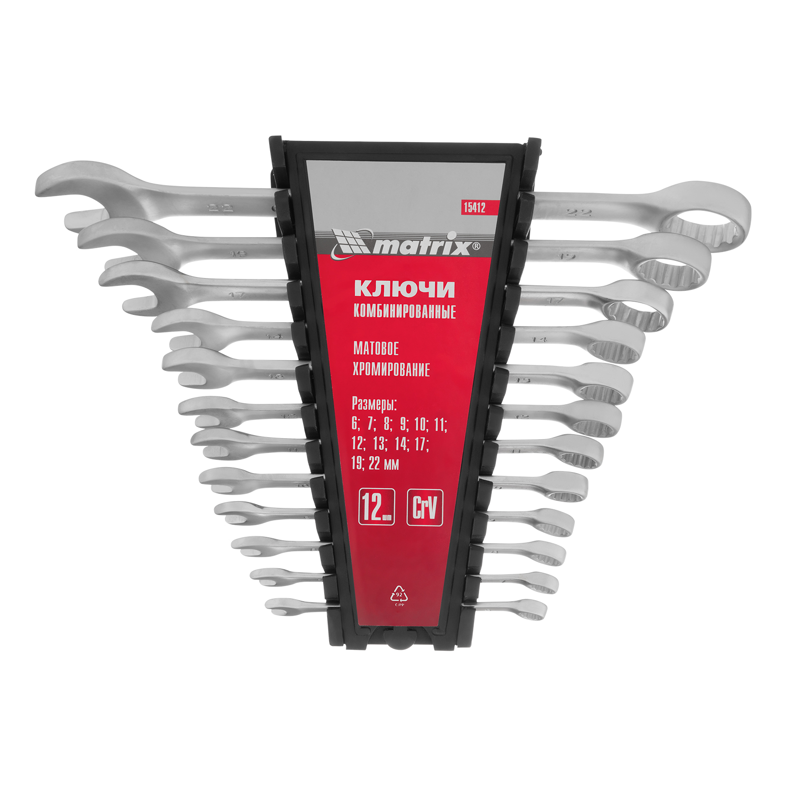 Набор ключей комбинированных, 6-22 мм, 12 шт, CrV, матовый хром Matrix в Краснодаре