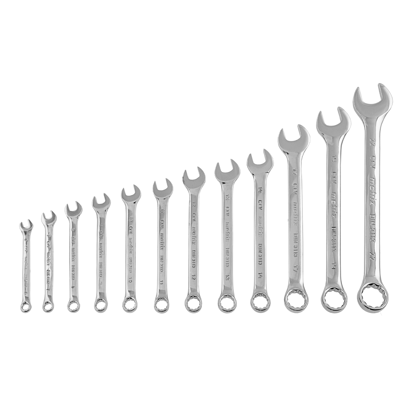 Набор ключей комбинированных, 6-22 мм, 12 шт, CrV, полированный хром Matrix в Краснодаре