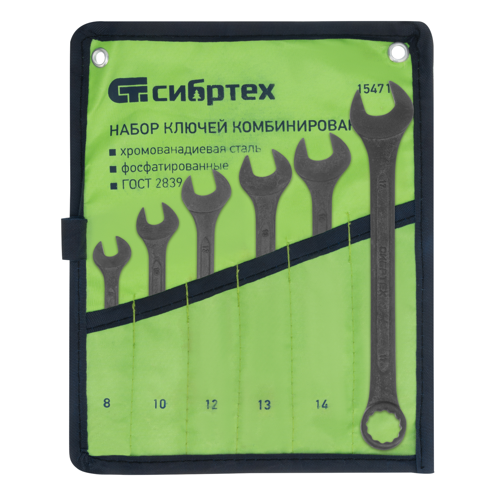 Набор ключей комбинированных, 8 - 17 мм, 6 шт., CrV, фосфатированные Сибртех в Краснодаре