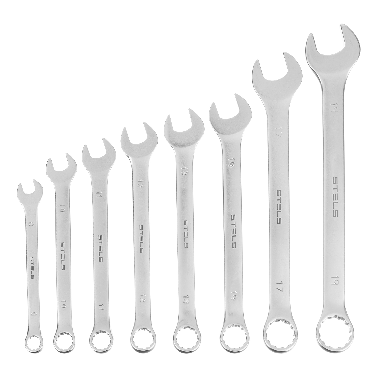 Набор ключей комбинированных, 8-19 мм, 8 шт, CrV, матовый хром Stels в Краснодаре