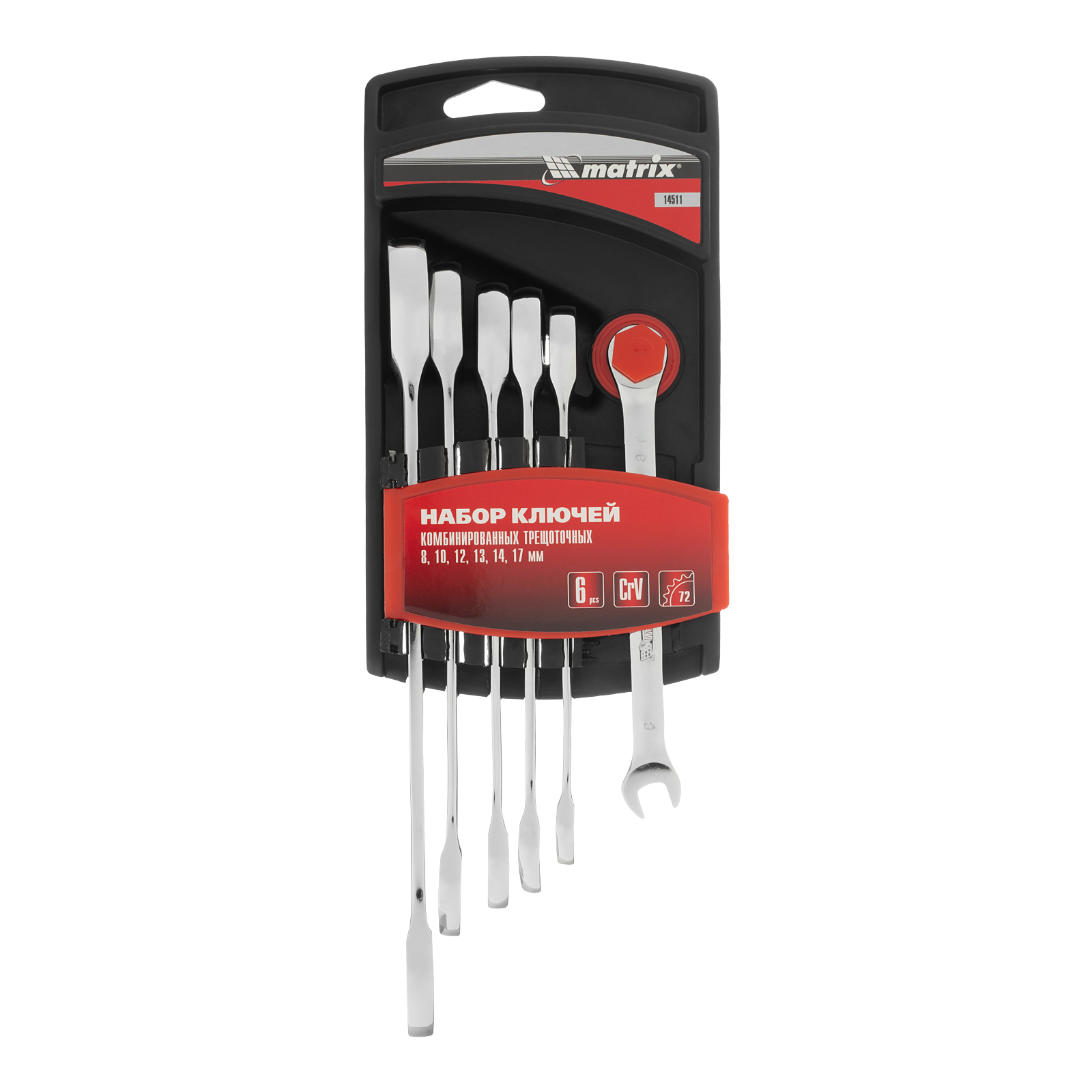 Набор из 6 комбинированных трещоточных ключей Matrix 14511 пригодится мастерам и автолюбителям для монтажа/демонтажа болтов и гаек наиболее популярных типоразмеров. Храповой механизм с 72 зубьями облегчает закручивание или откручивание крепежей, в том числе в труднодоступных местах.