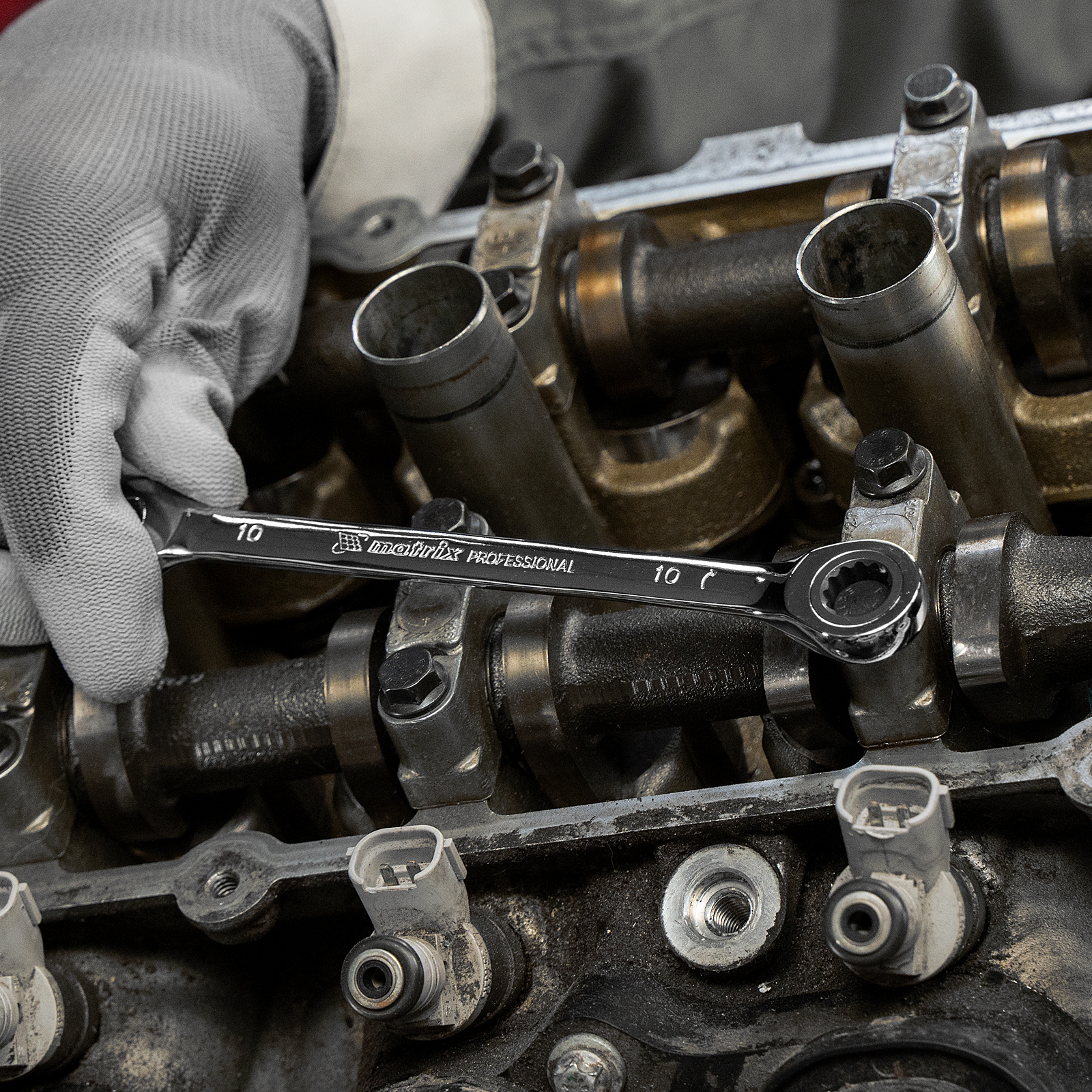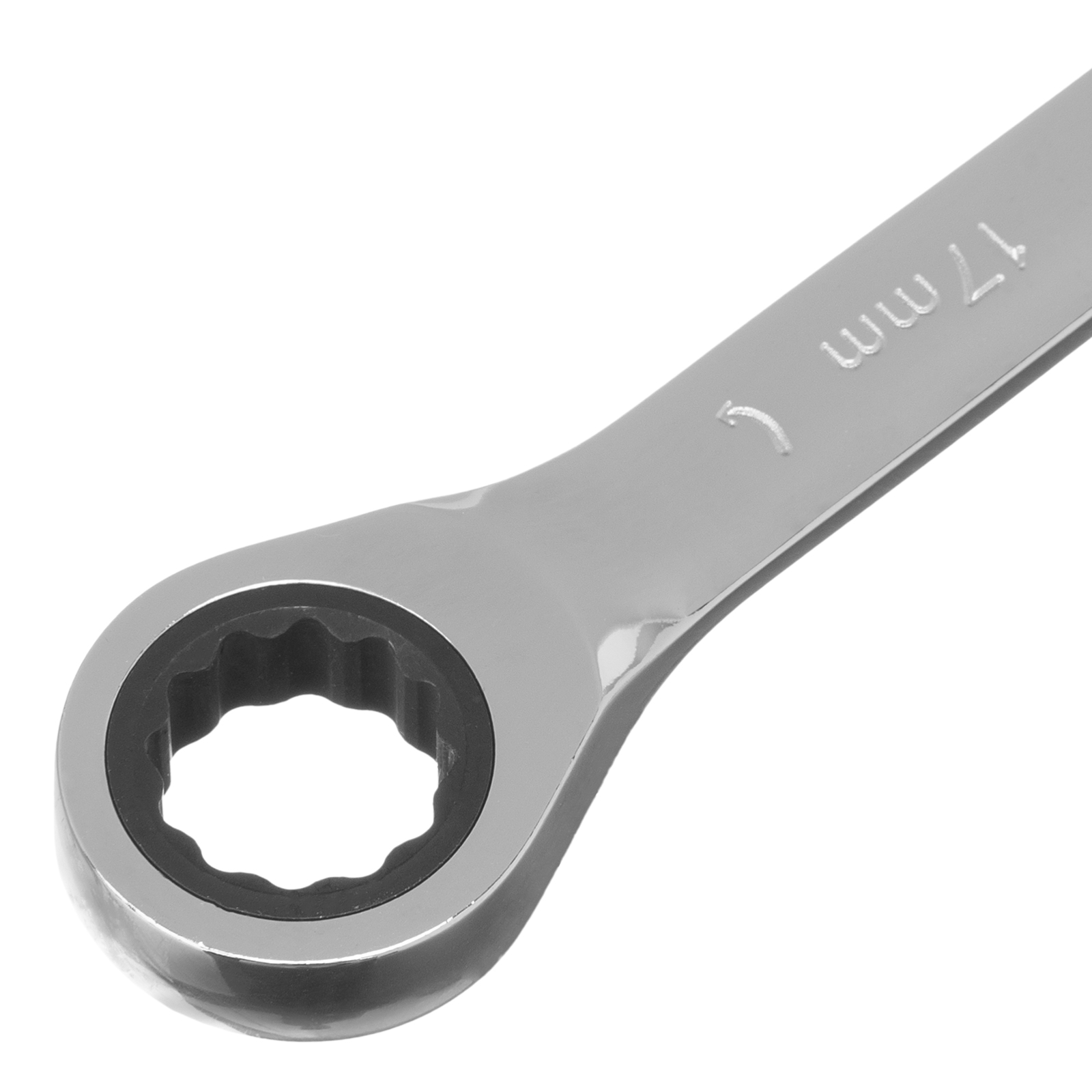 - Эффективная работа — 12-гранный профиль накидной части ключа плотно охватывает поверхность крепежа, предотвращая деформацию его граней.