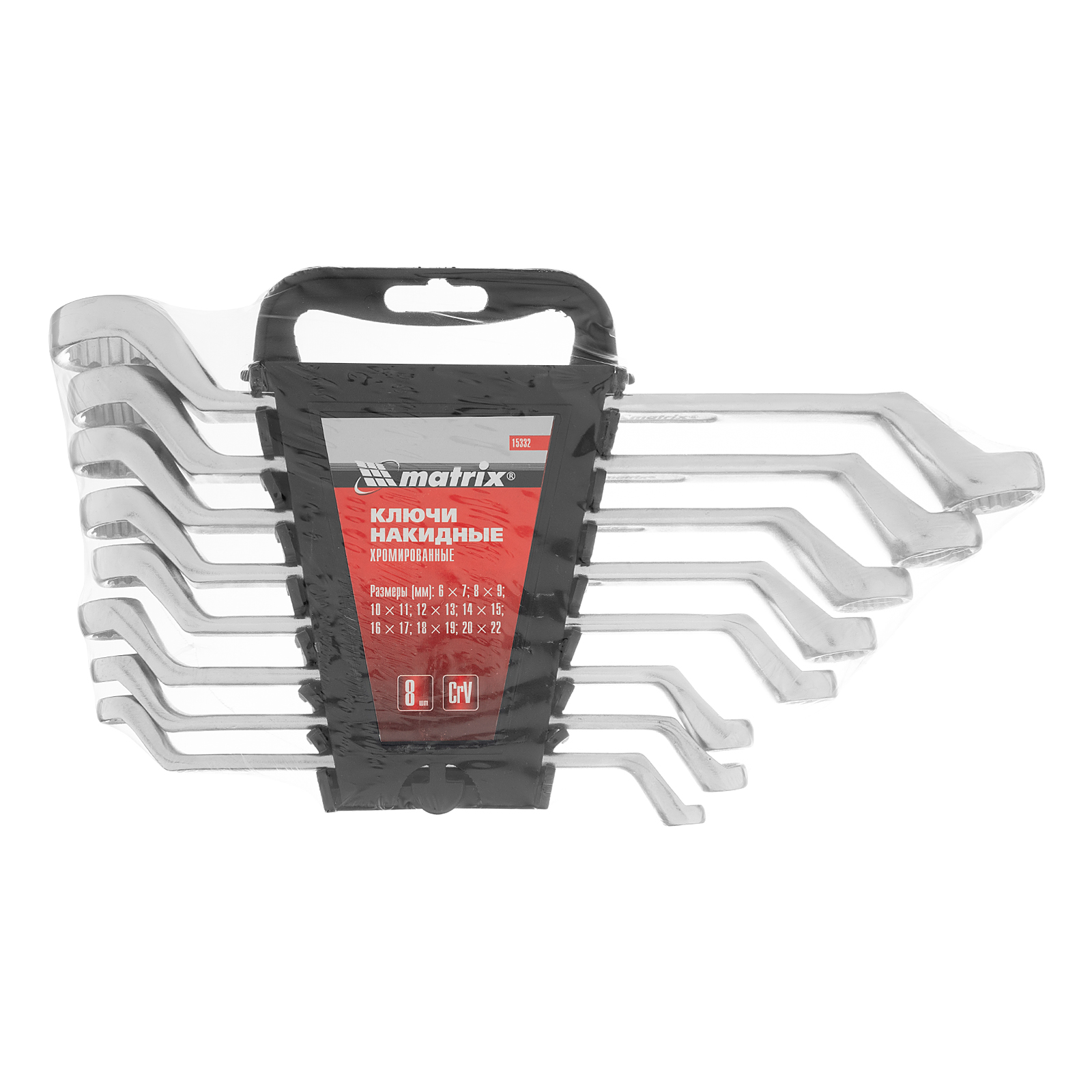 Набор ключей накидных, 6-22 мм, CR-V, 8 шт, полированный хром Matrix в Краснодаре