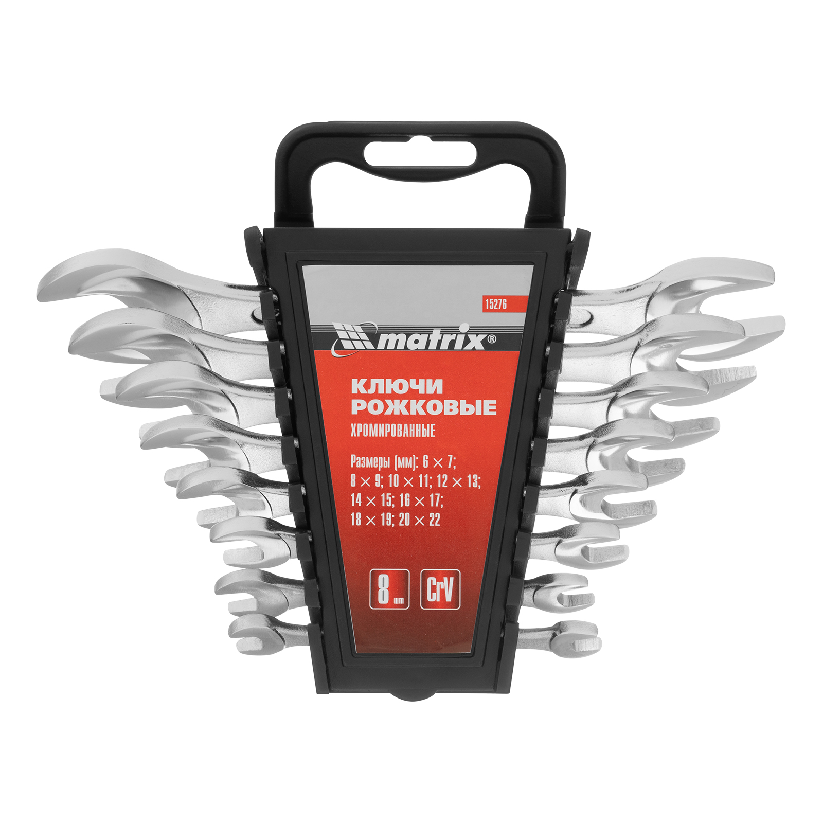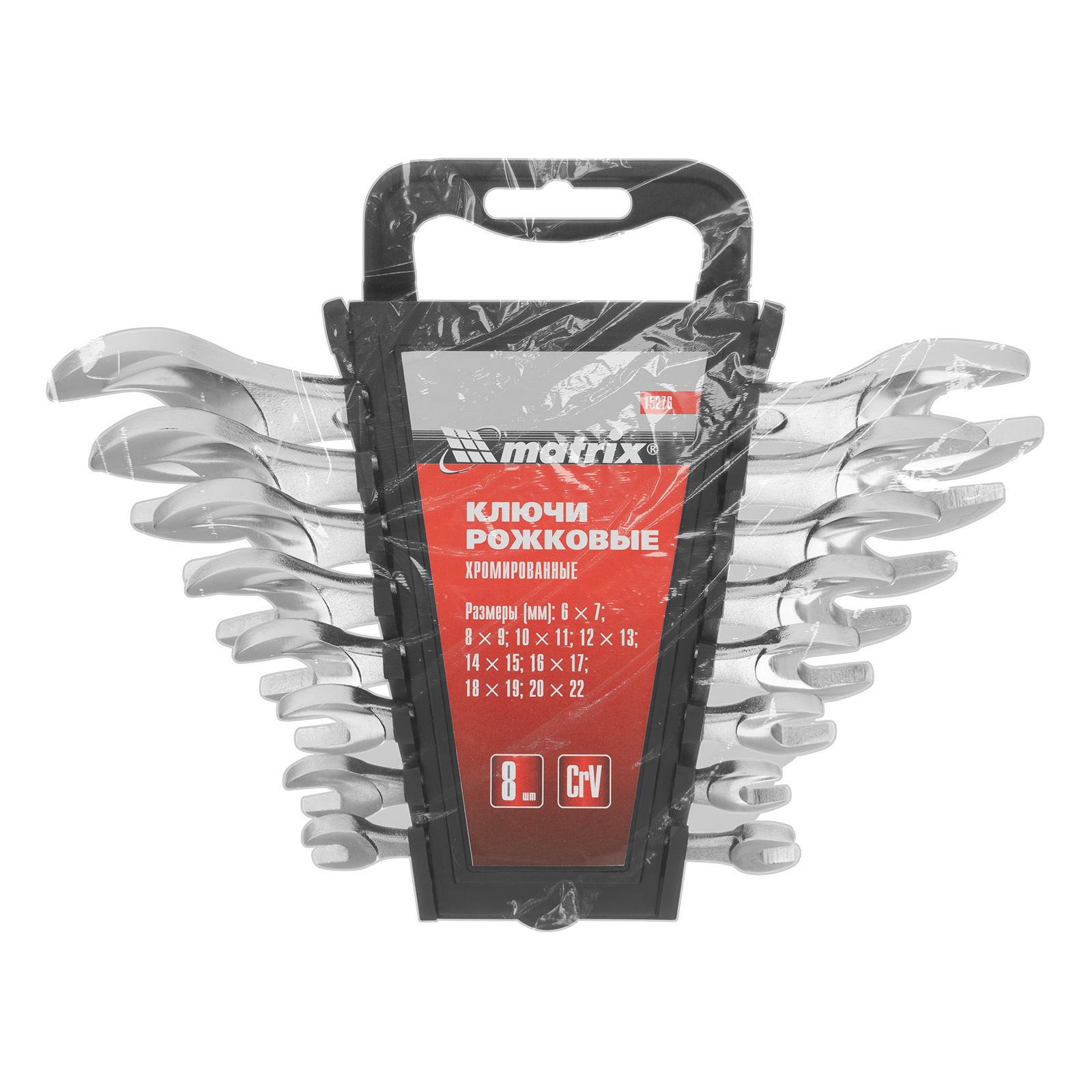 Набор ключей рожковых, 6-22 мм, 8 шт, CrV, хромированные Matrix в Краснодаре