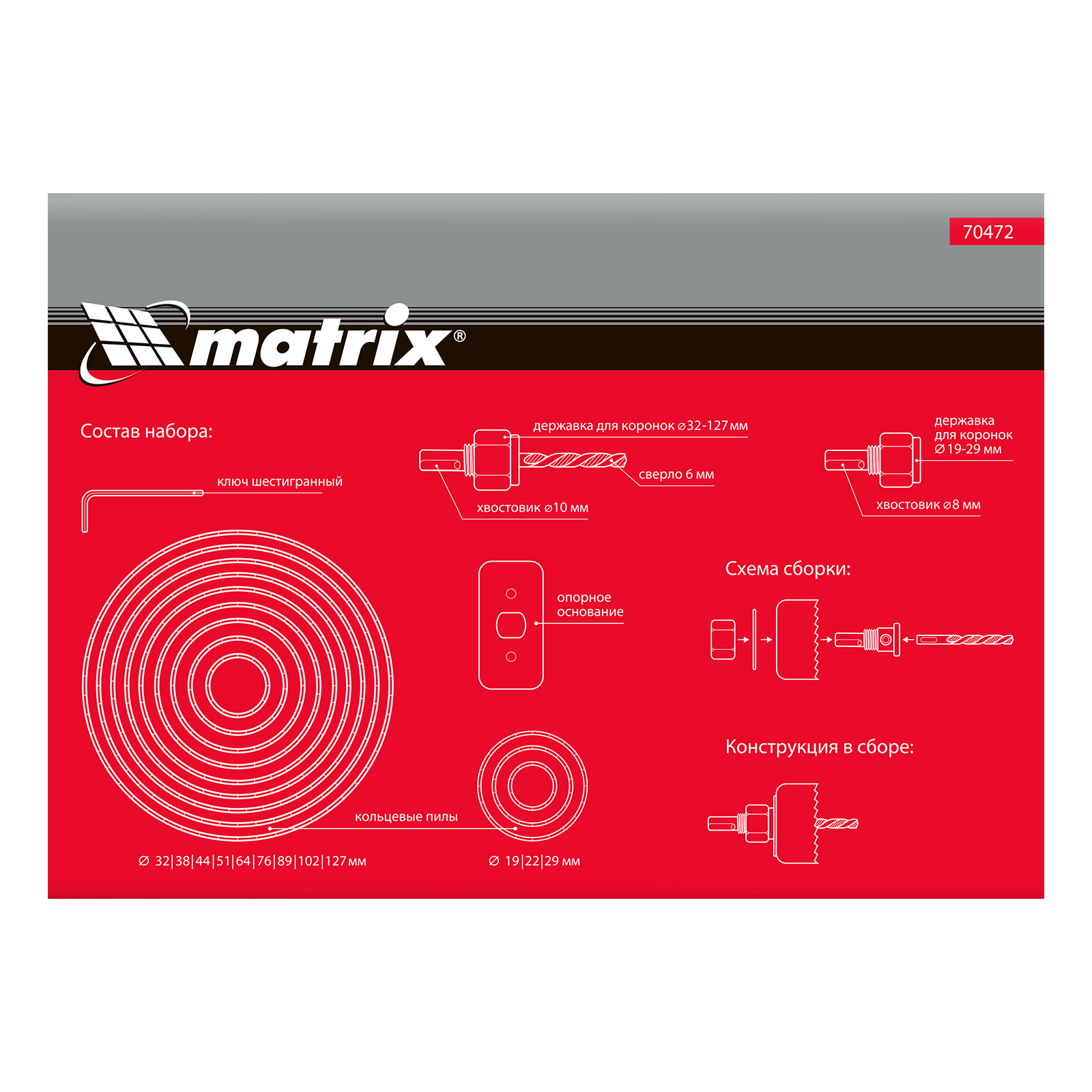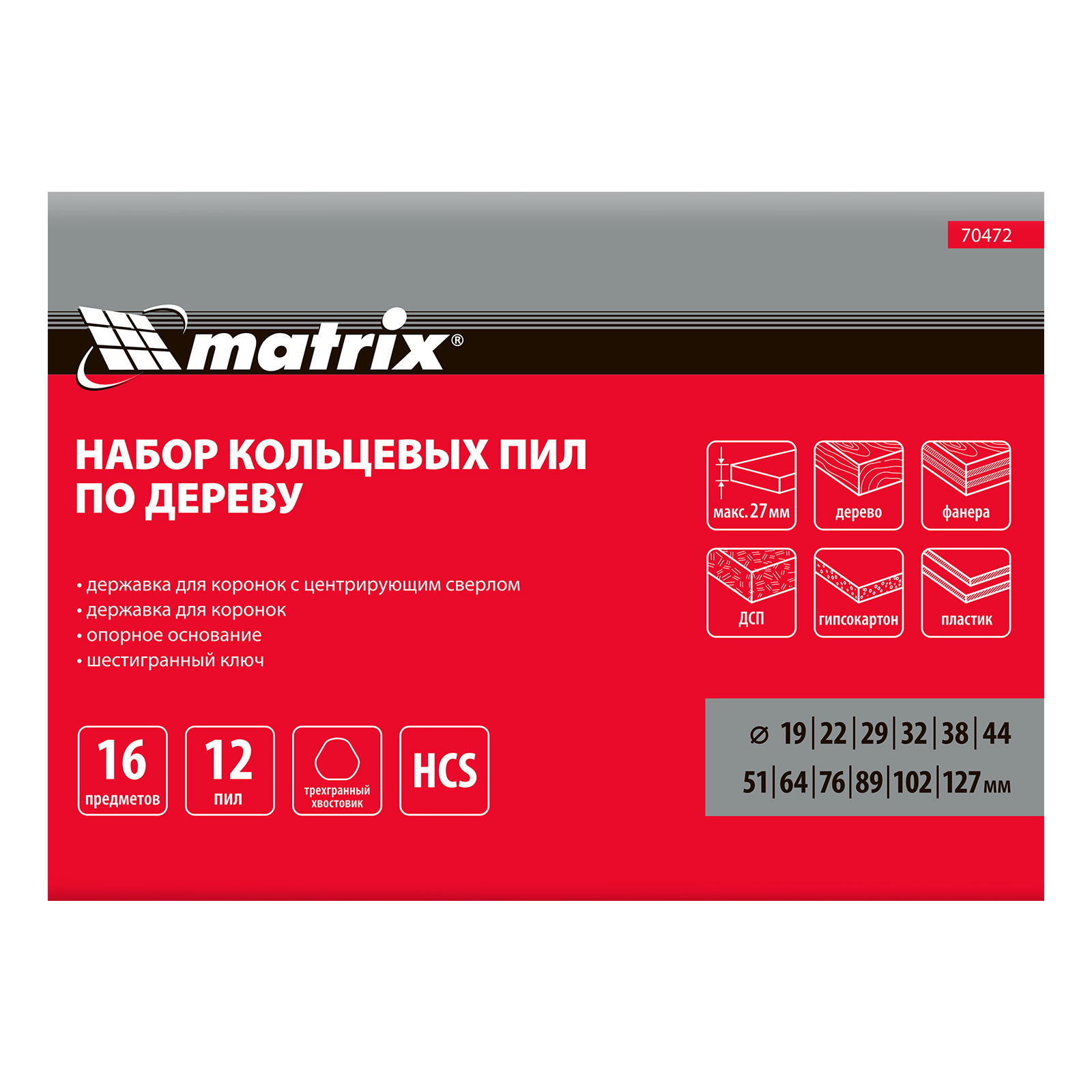 Набор кольцевых пил по дереву, 19-127 мм, 12 предметов Matrix в Краснодаре