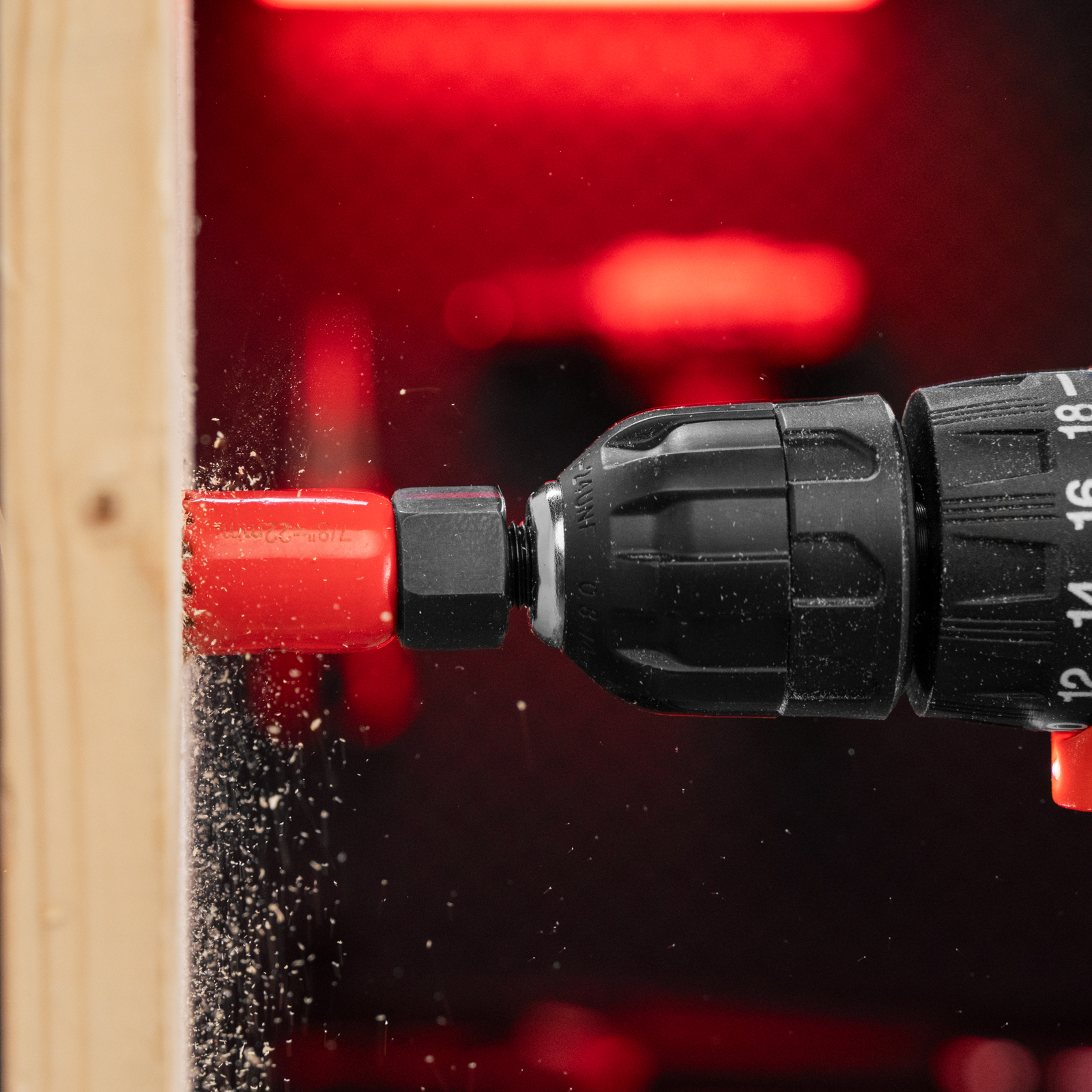 - Быстрый и чистый рез — опорное основание исключает проворот коронки во время сверления.