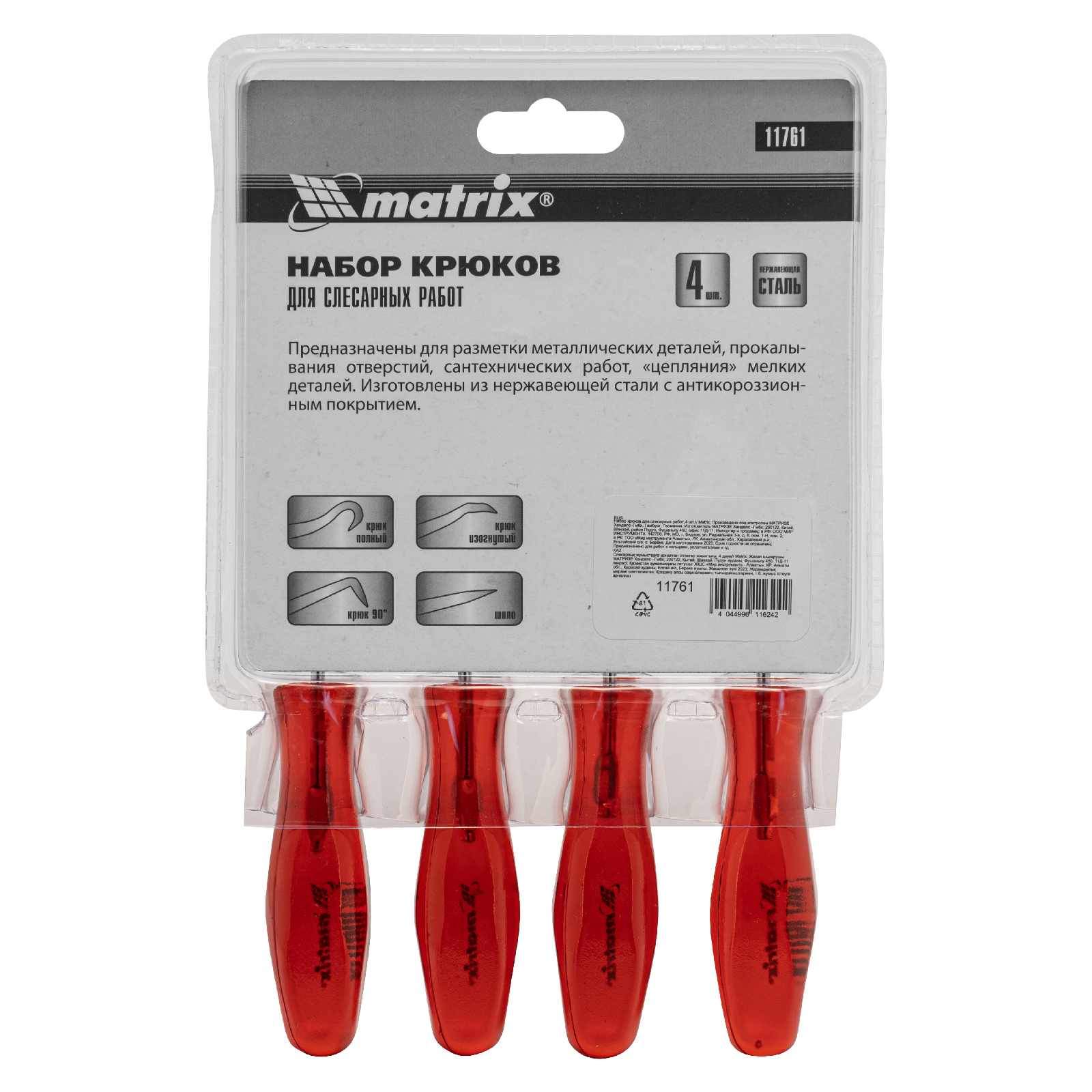 Набор крюков для слесарных работ, 4 шт Matrix в Краснодаре