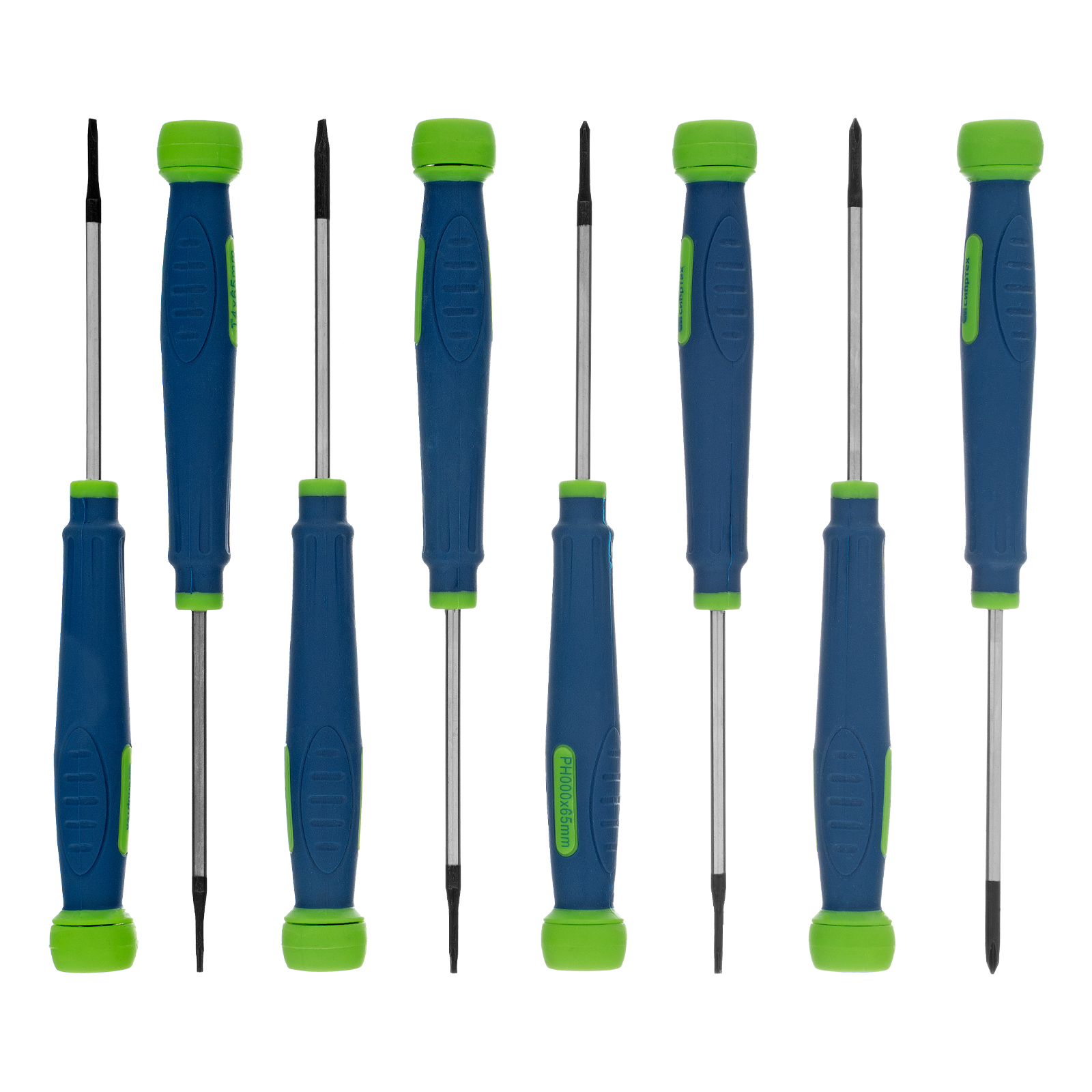 Отвертки для точных работ: T4, T5, T6, PH000, PH00, PH0, SL2, SL3 - 8 штПластиковый кейс - 1 шт |
