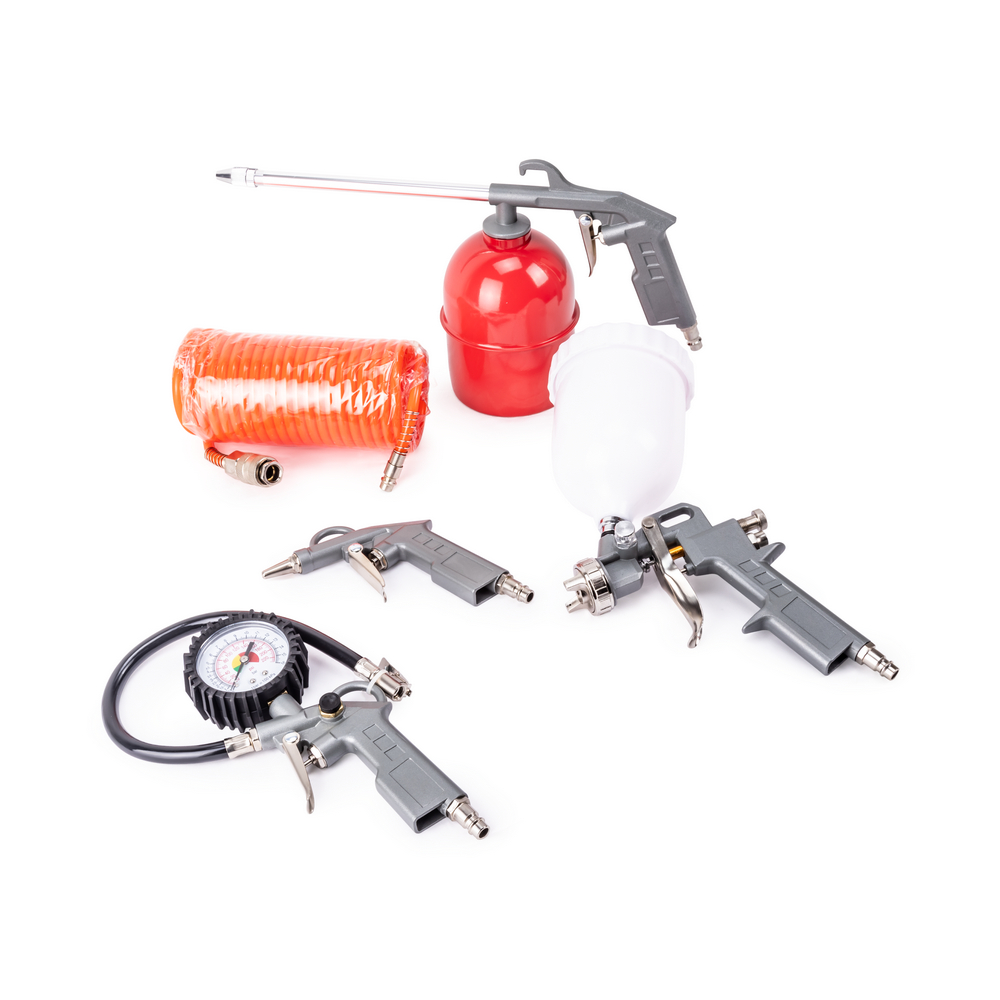 5. Шланг пневматический спиральный 5 м, материал - полиэтилен, обжат быстросъёмными фиттингами Rapid М ("папа") - Rapid F ("мама").