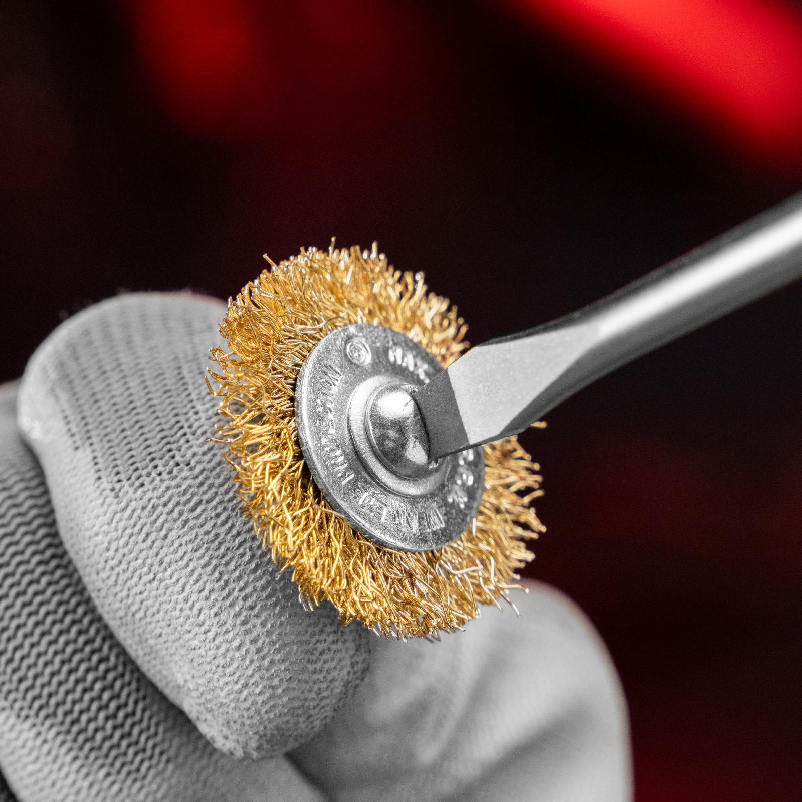 - Аккуратная работа — щетки с витой щетиной снимают тонкий слой материала.