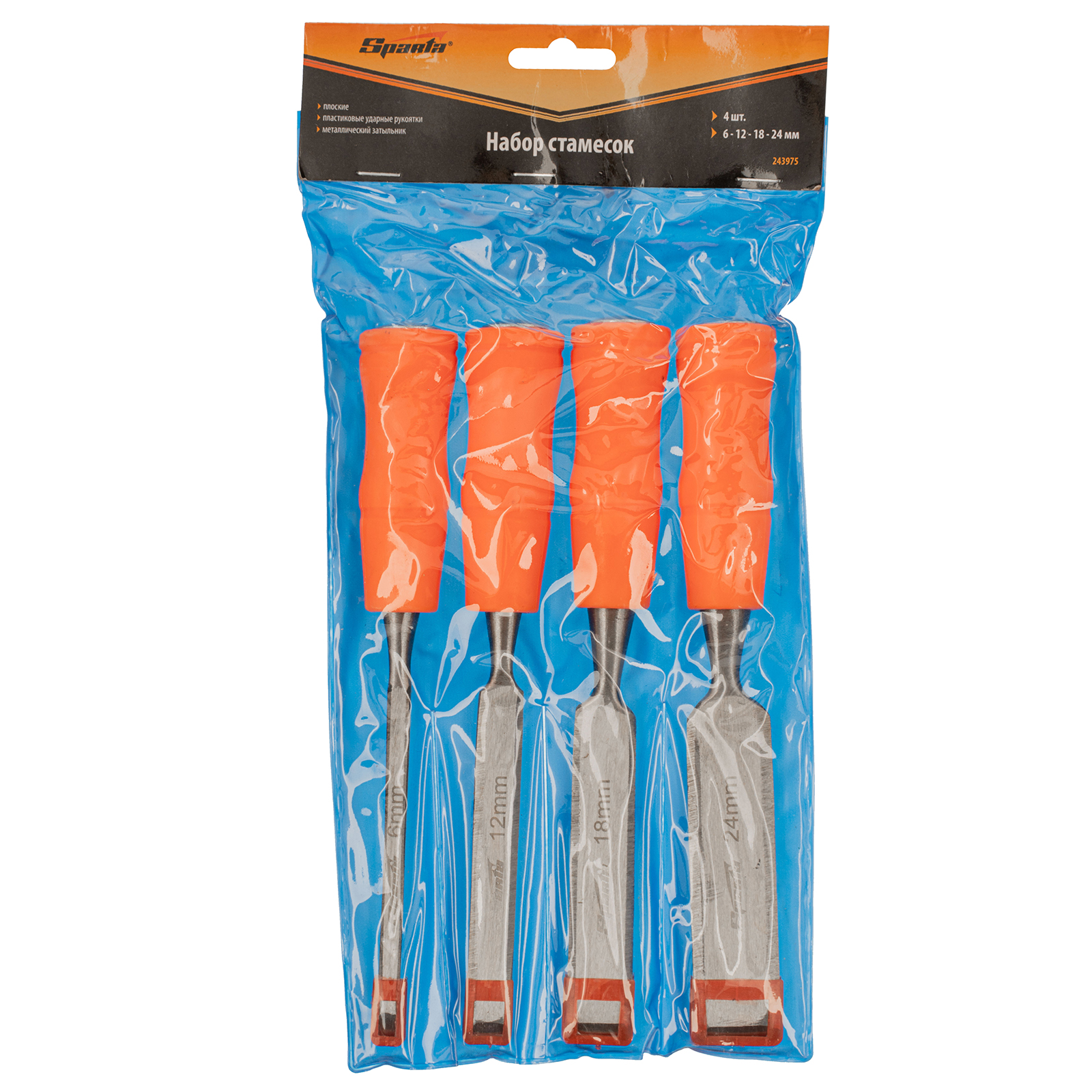 Набор стамесок 4 шт, 6-12-18-24 мм, плоские, пластиковые ударные рукоятки Sparta в Краснодаре