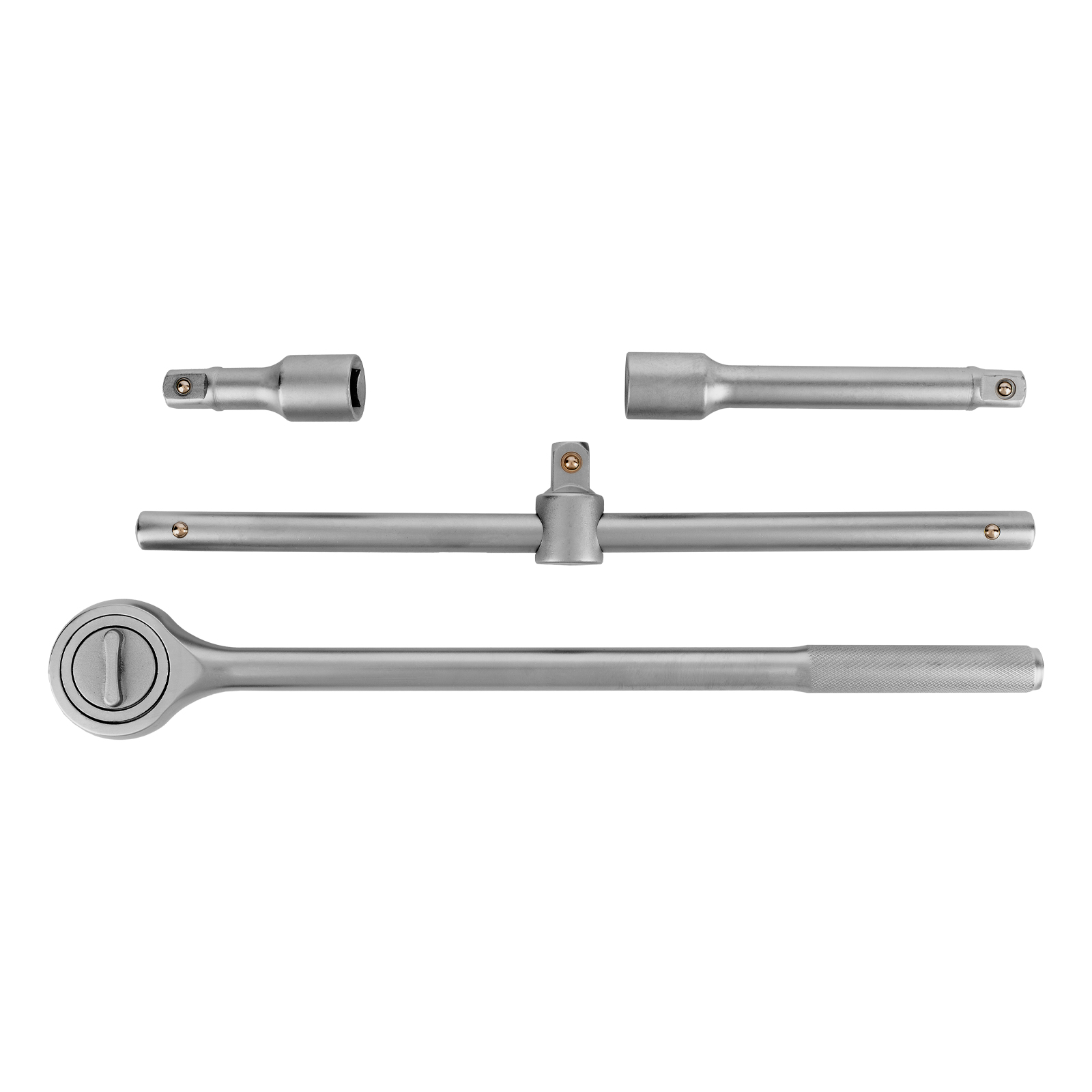 - Удобная работа в труднодоступных местах — в комплект поставки входит трещоточный ключ, вороток и удлинители 100 и 200 мм.