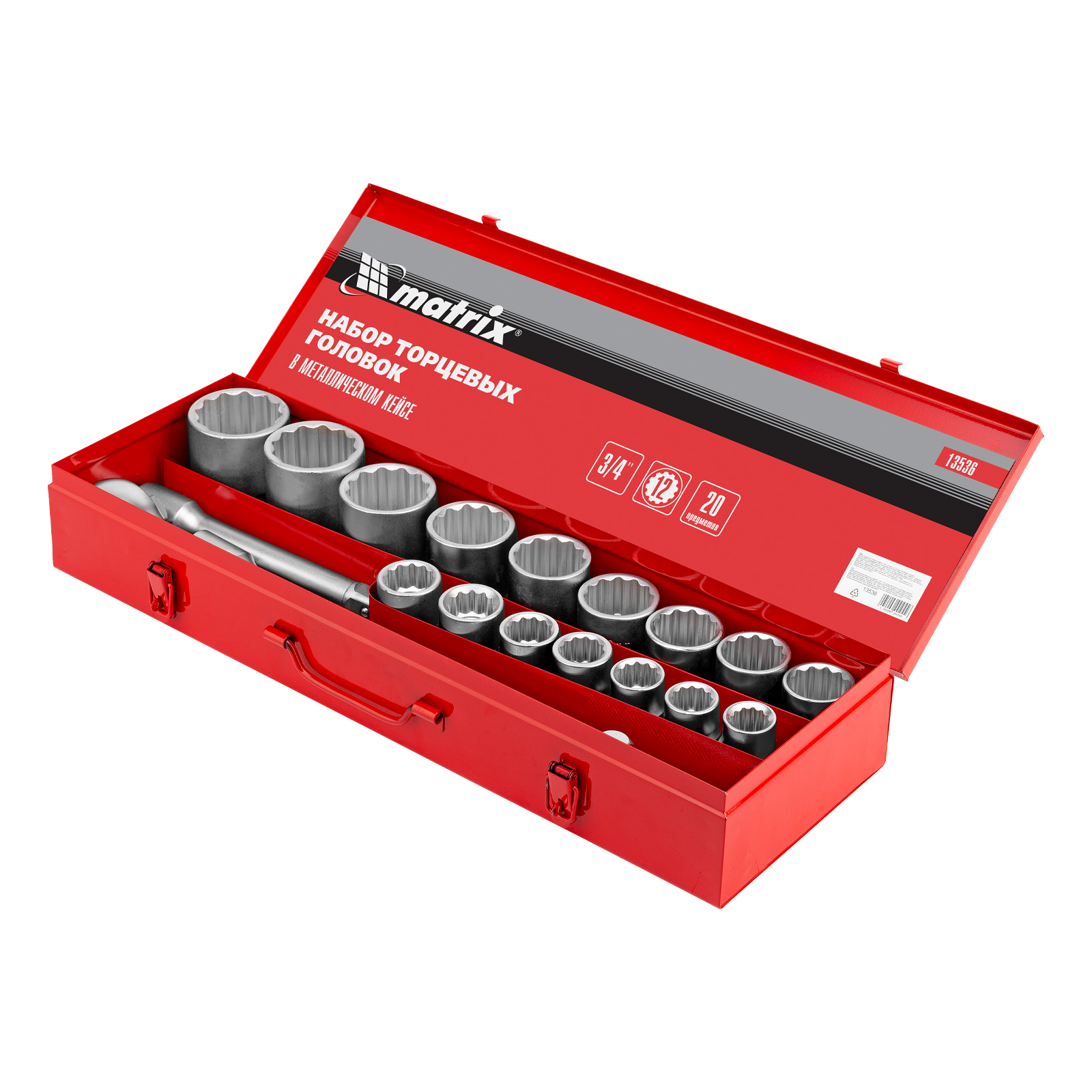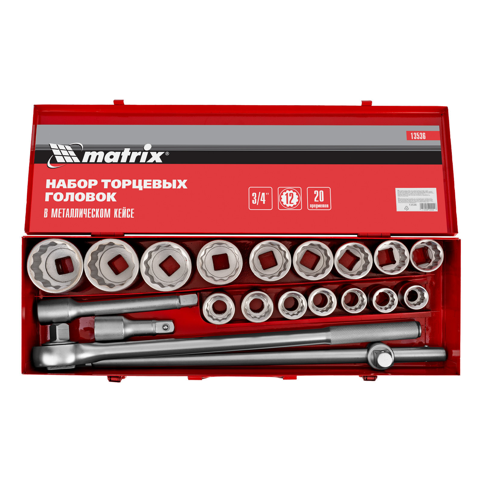 Набор торцевых головок 3/4", головки 19 х 50 мм, 20 предметов, в метал. боксе Matrix в Краснодаре
