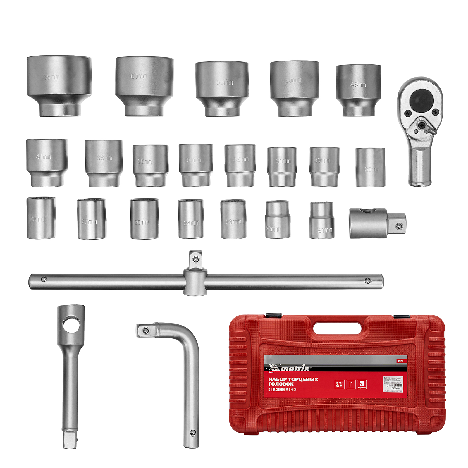 Набор торцевых головок 3/4"–1", головки 21 х 65 мм, 26 предметов, в пласт. боксе Matrix в Краснодаре