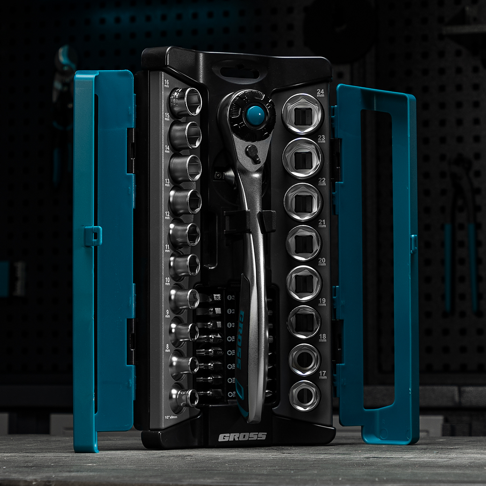 Набор торцевых головок, трещотка 120 зубьев, 1/2", CrV, 36 предметов Gross в Краснодаре